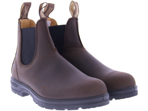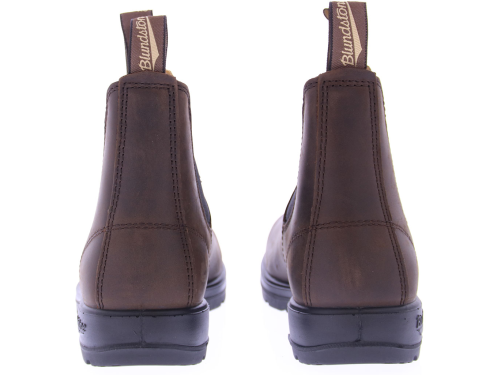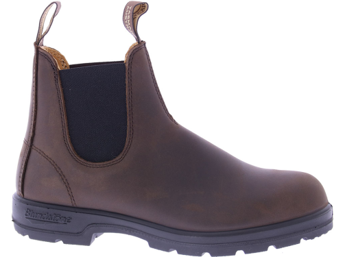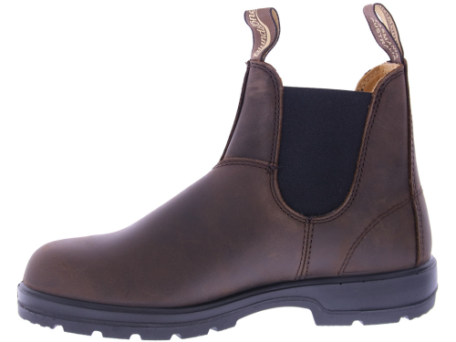 Donkerbruin leren dames Chelseaboot van Blundstone uit Australie. De laars is waterafstotend tot aan het elastiek. De soepele zool en het comfortabele voetbed zorgen ervoor dat kenners steeds weer een nieuw paar kopen. Heel geschikt ook voor een bredere voet. De twee aantreklusjes zijn voorzien van het Blundstone logo. En de leest is rond van vorm.