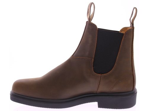 Donkerbruin leren heren Chelsea boot van Blundstone uit Australie. Deze laars is waterafstotend tot aan het elastiek. De soepele zool en het comfortabele voetbed zorgen ervoor dat kenners steeds weer een nieuw paar kopen. Deze boots zijn ook geschikt voor de wat bredere voet. De twee aantreklusjes zijn voorzien van het Blundstone logo.