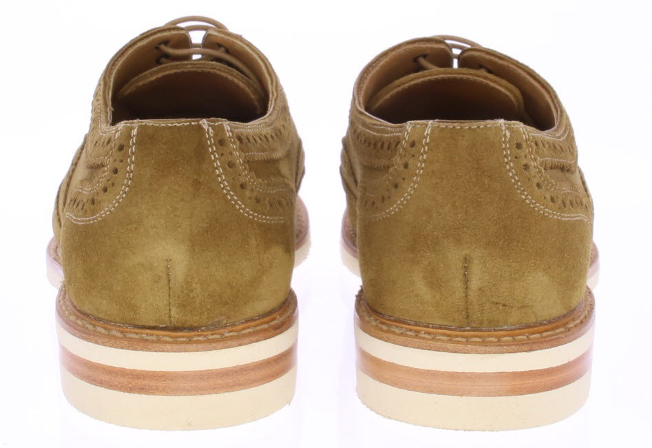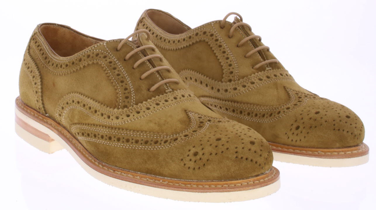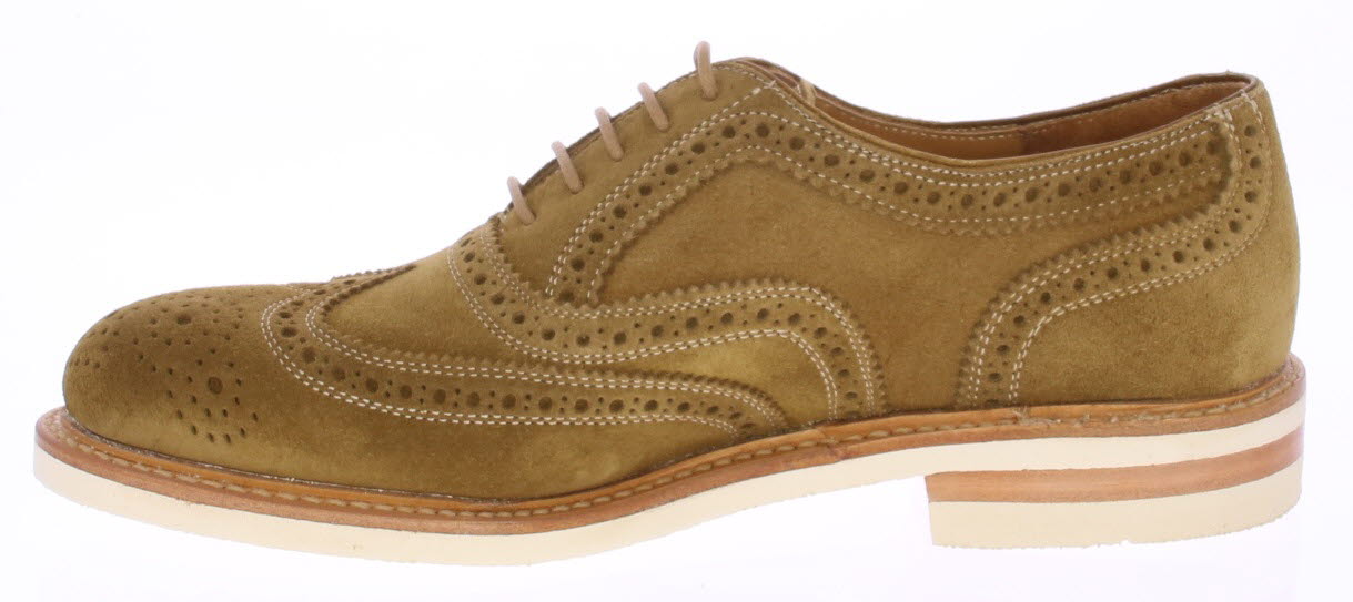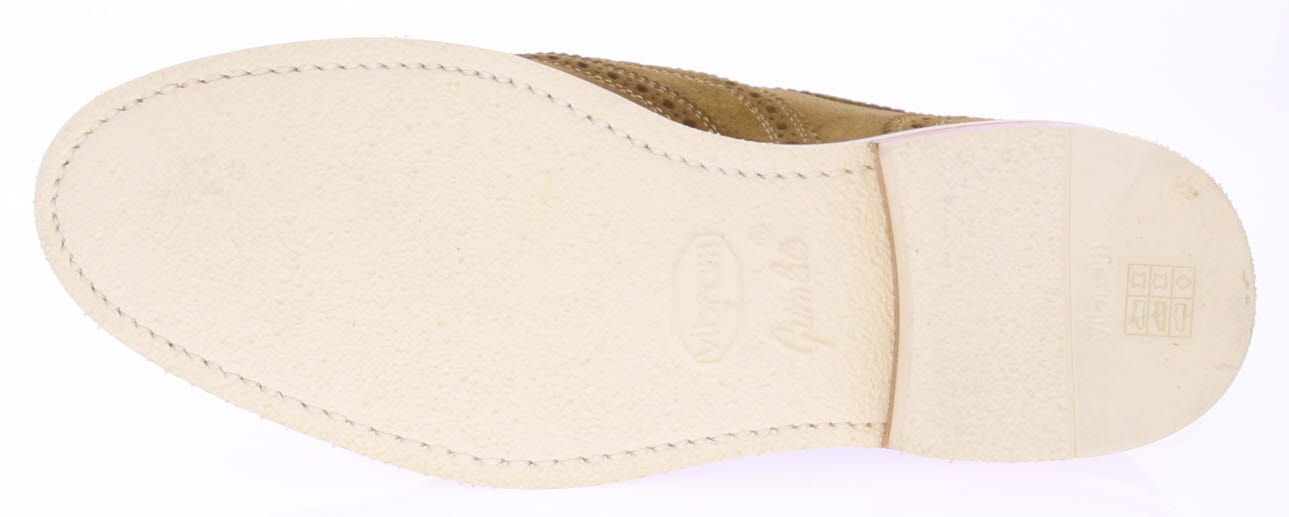 Bruine / beige suede heren brogue schoen van Berwick. Deze schoen komt op een witte rubberen zool en is goodyear gemaakt.