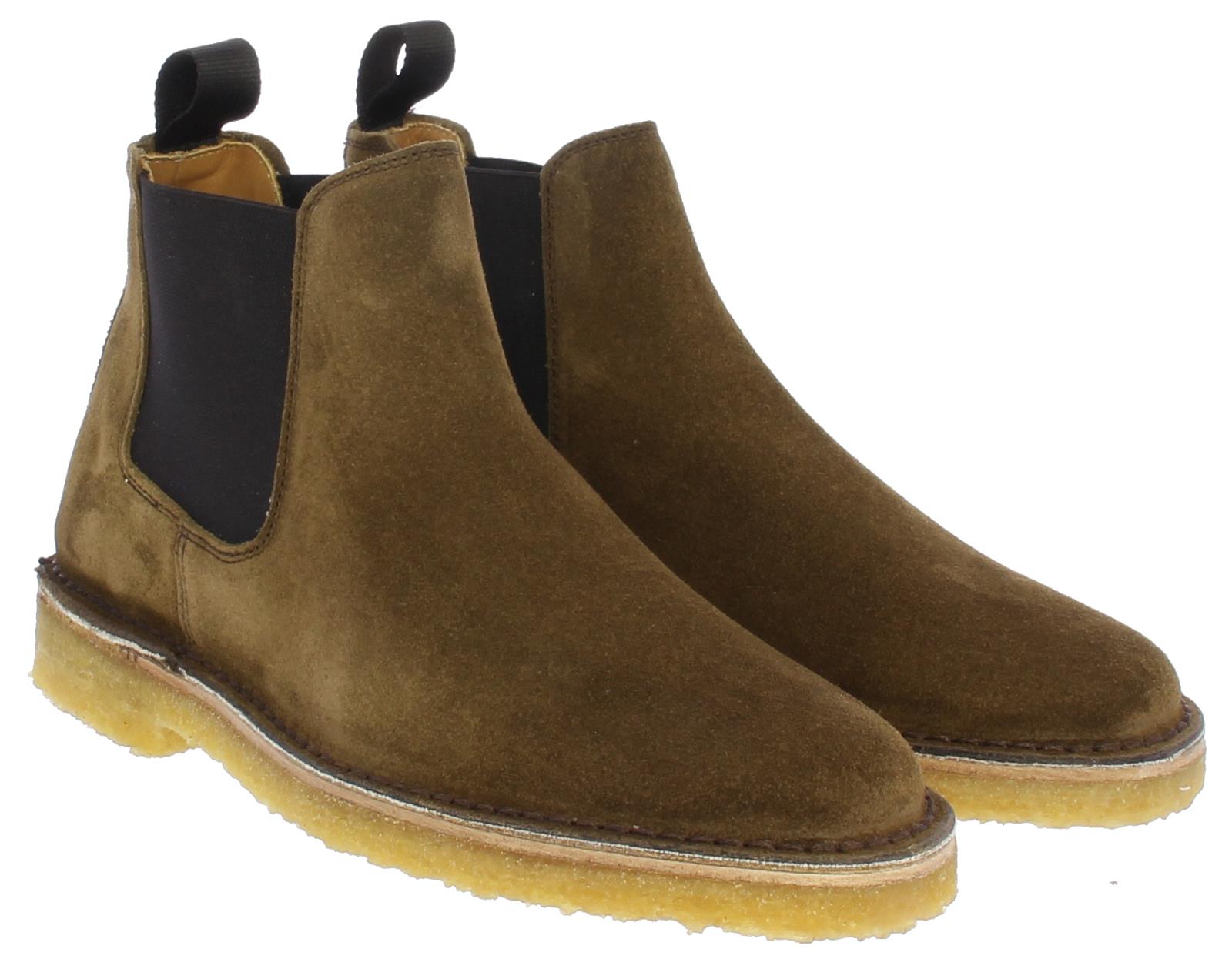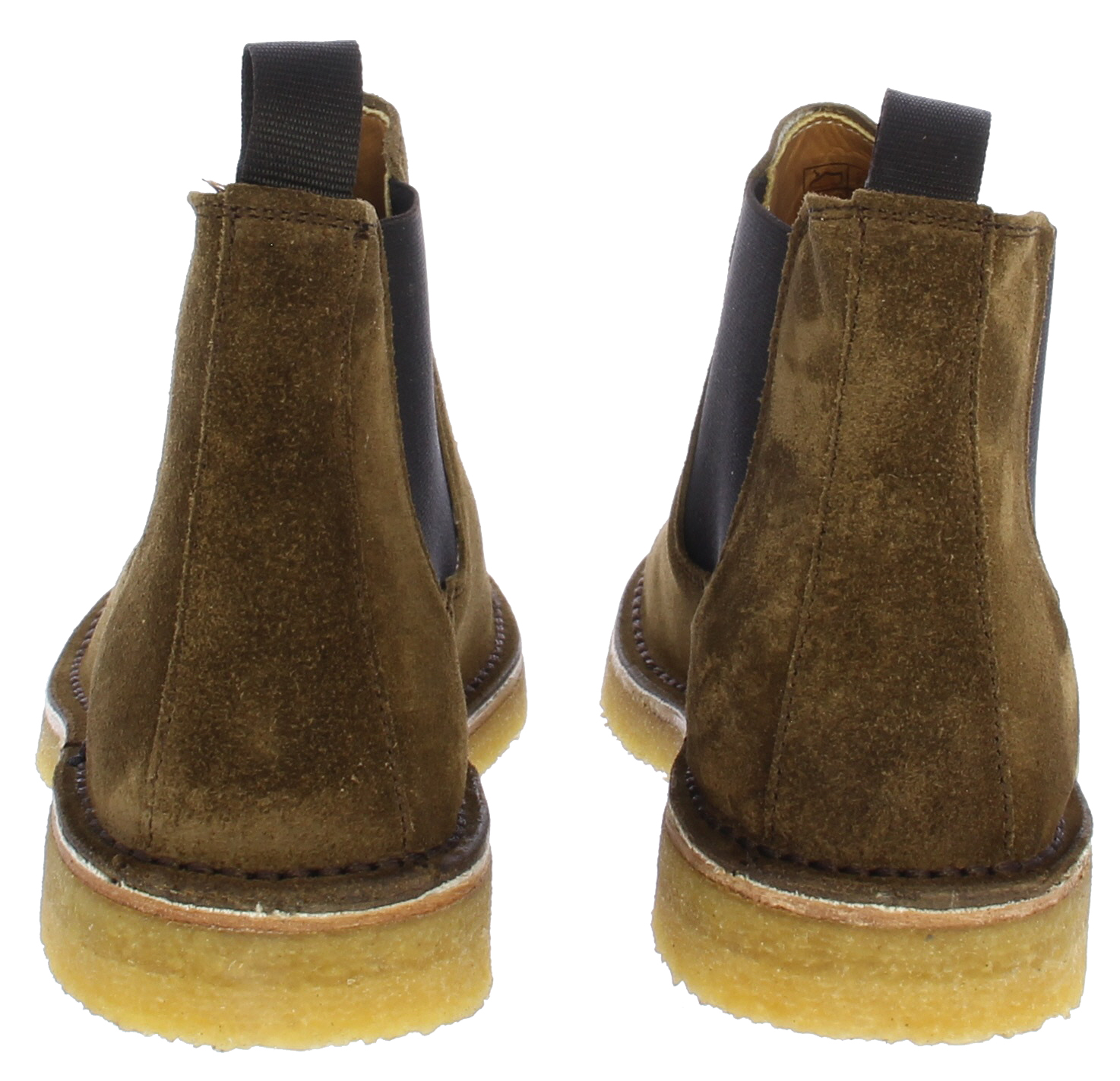 Bruine suede heren Chelseaboot van Berwick. Deze enkellaars heeft elastiek aan de zijkanten en een treklus aan de hiel voor een gemakkelijke instap. De schoen is uitgevoerd in middel bruin suede en komt op een crepe zool. De binnenvoering is van leer.