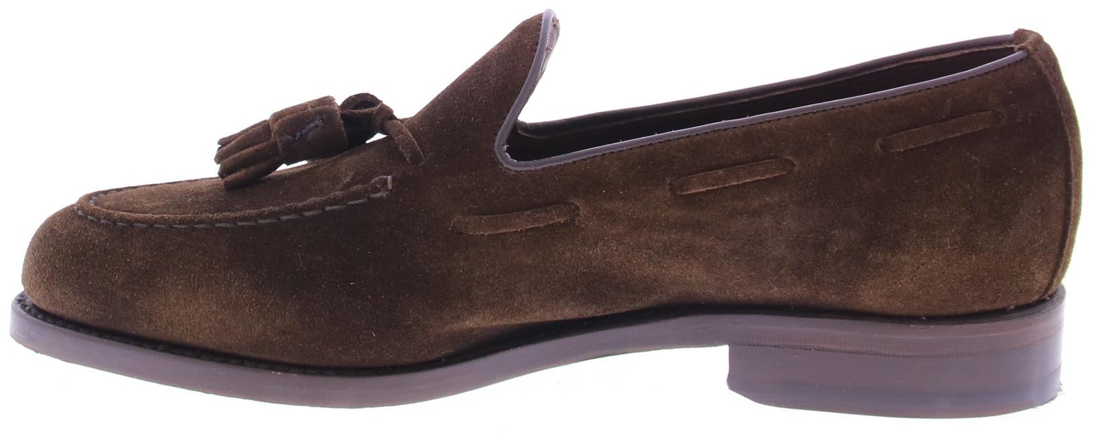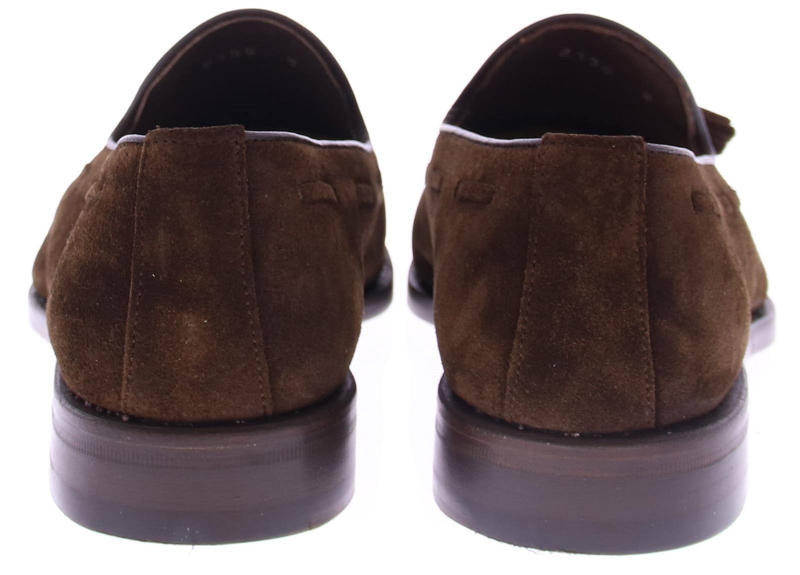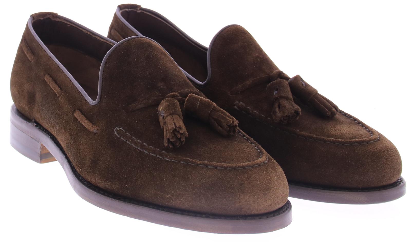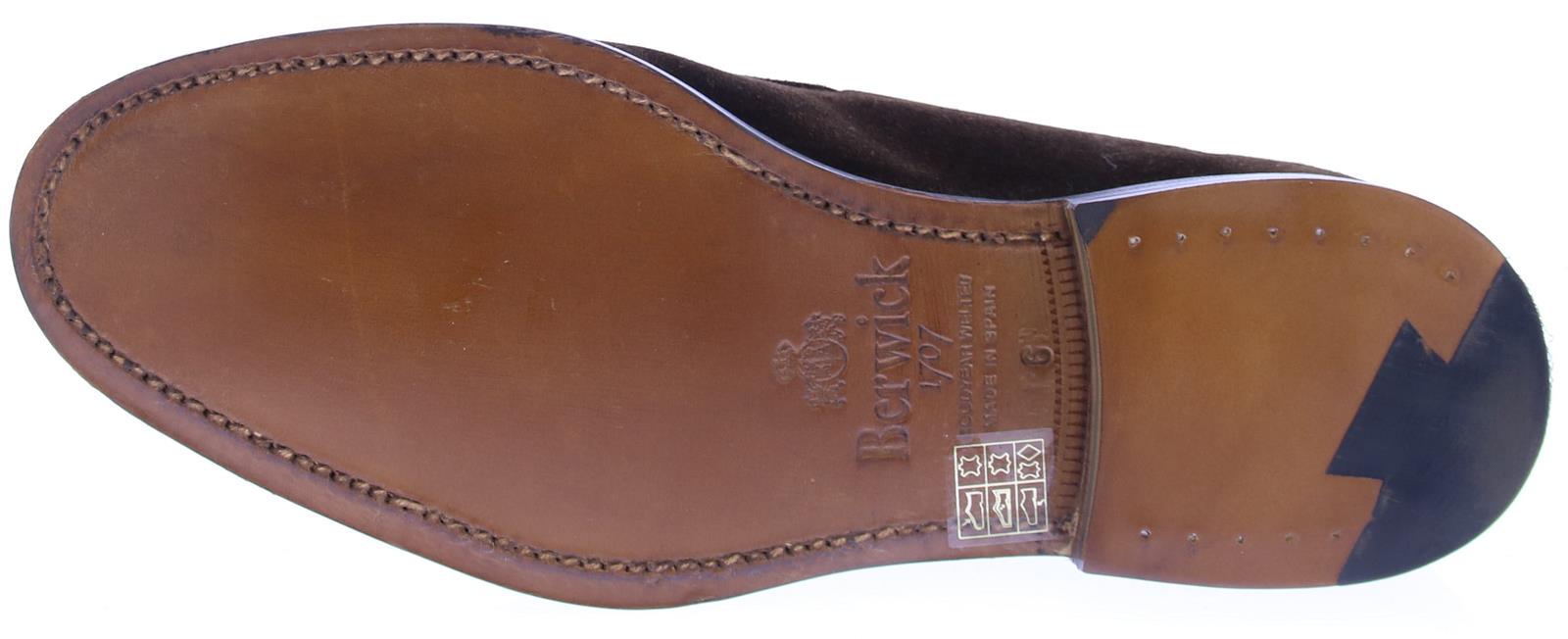 Donkerbruine suede heren tesselloafer van Berwick. Dit model is uitgevoerd in donker bruin ge-olied suede en heeft een spiegelneus, waarbij er een stiknaad rond over de neus van de schoen loopt. Deze schoen is heeft een leren voering en een leren zool.