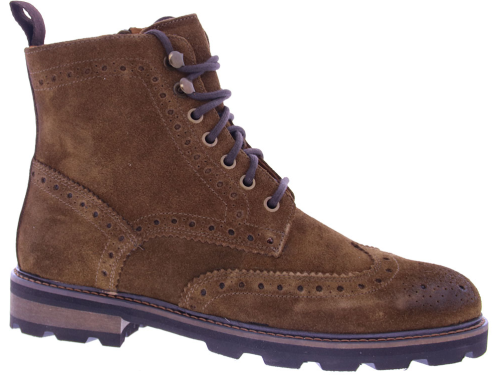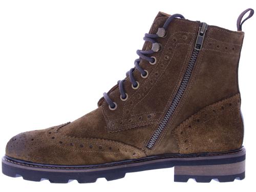 Donker bruine suede heren veterlaars van Daniel Kenneth. Deze laars is uitgevoerd in een luxe bergschoen-model. De binnenzool is uitneembaar en de zool is van rubber.