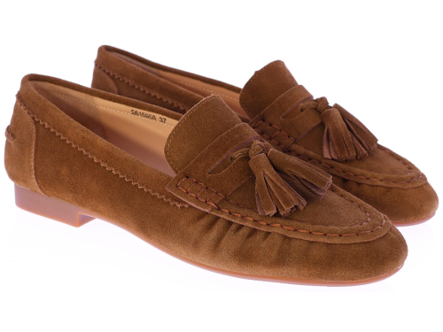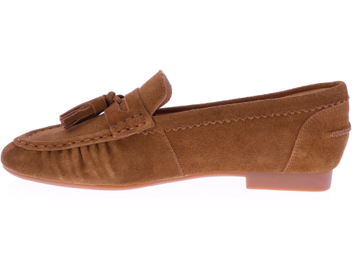 Bruin suède dames instappers van Di Lauro, model Diomede. Deze instapper heeft een klassieke mocassinbelijning en is afgewerkt met suède kwastjes op de wreef. Het zachte suède vormt prettig om de voet en de leren voering zorgt voor comfortabel dragen gedurende de dag. De rubberen zool biedt soepele ondersteuning bij dagelijks gebruik. Een tijdloos model dat moeiteloos te combineren is met zowel casual outfits als nette pantalons.