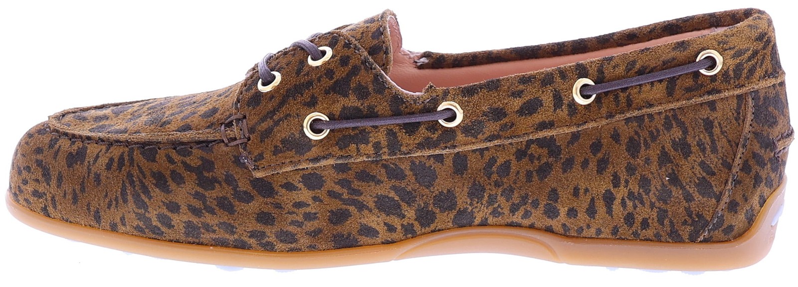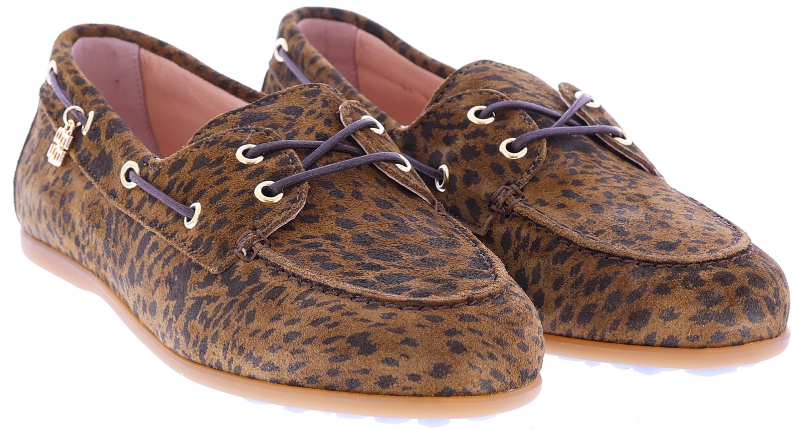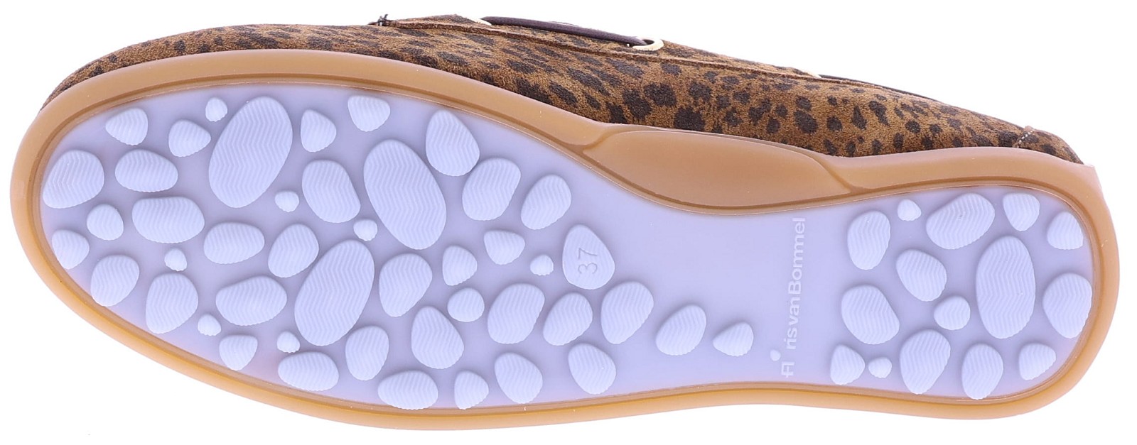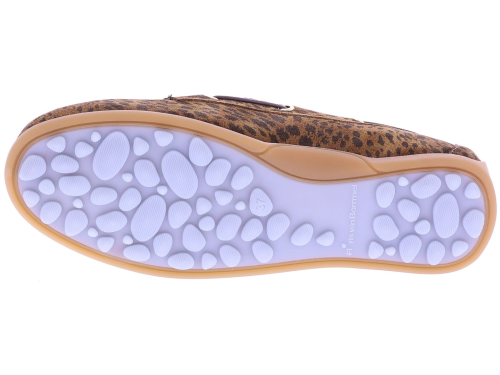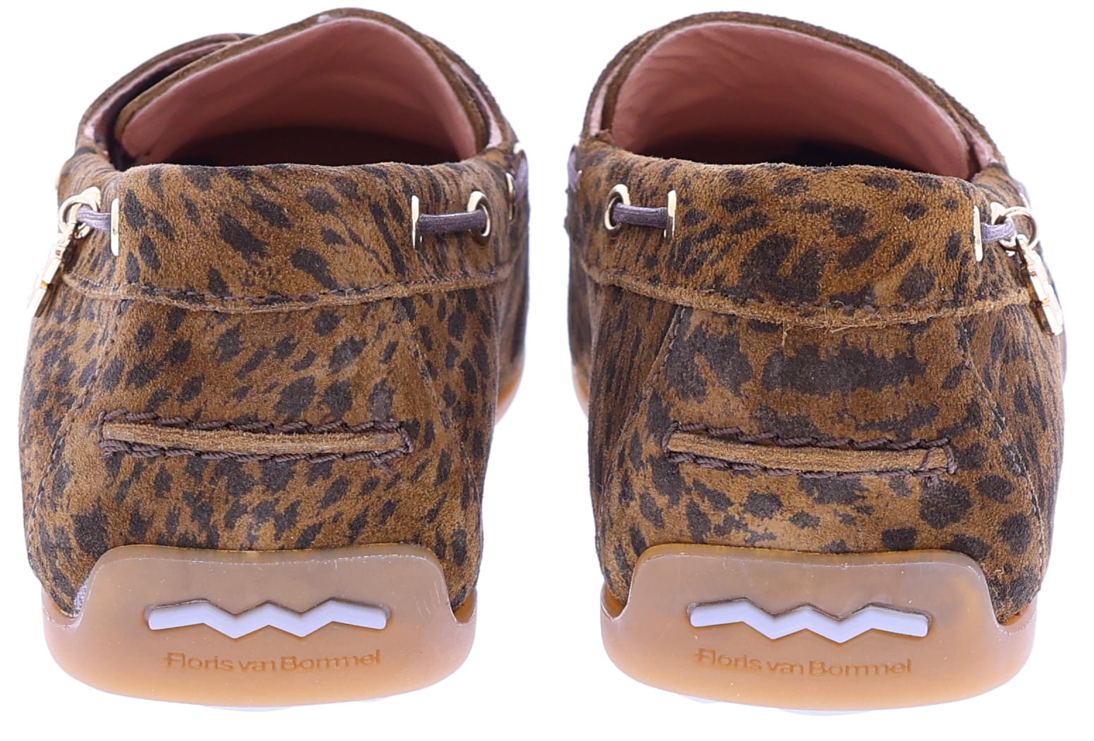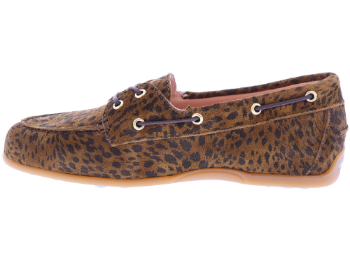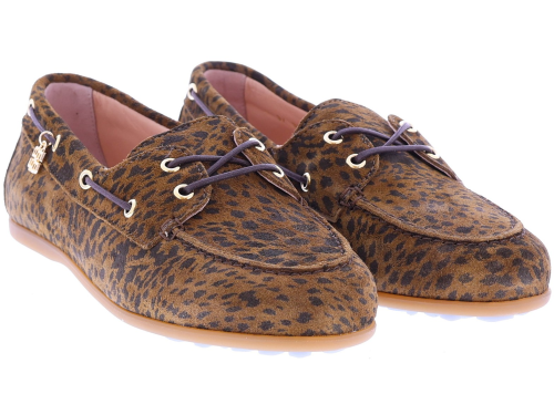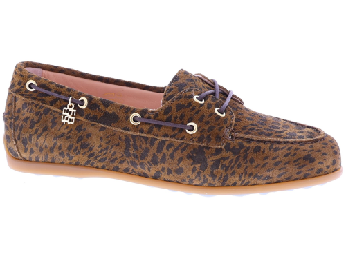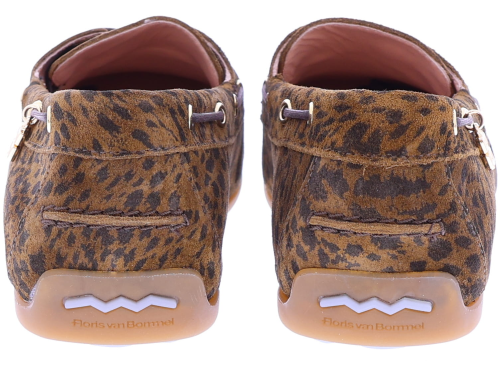 Bruine suède dames bootschoenen van Floris van Bommel. Model Bohwi 01-02 is uitgevoerd in leopard suède en heeft een sportieve uitstraling met een rondom geregen bruine veter in bootschoenstijl. De slijtvaste TPU-zool loopt bij de hiel iets omhoog, met zichtbaar Floris van Bommel-logo en kenmerkende zigzaglijn. De roze leren voering en het uitneembare voetbed met foamlaag zorgen voor extra comfort. Ontdek ook de andere damesschoenen van Floris van Bommel bij Klijsen.