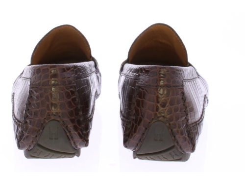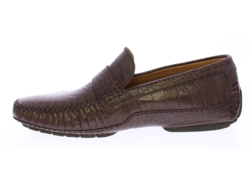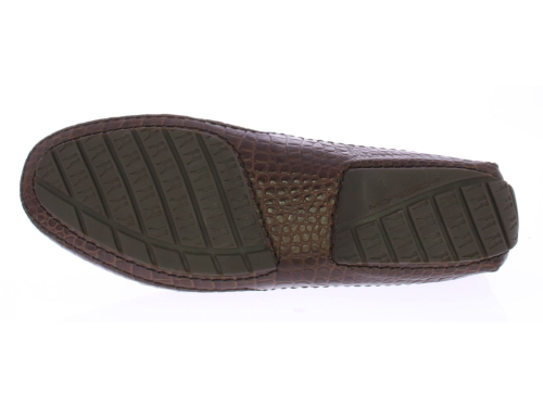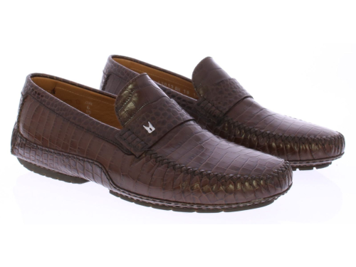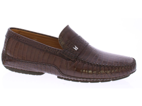 Heren instapper van Moreschi uitgevoerd in donkerbruin kalfsleer met krokoprint. De schoen heeft een leren voering en rubber zool.