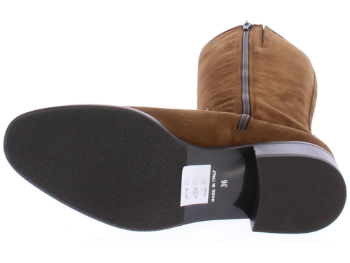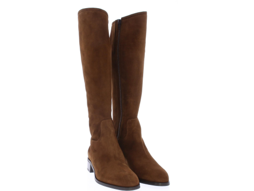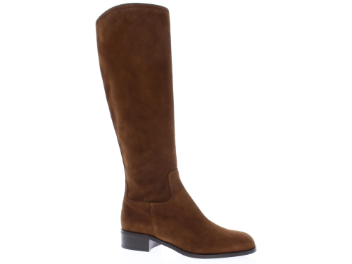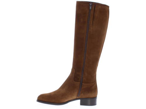 Midden bruin suede dameslaars van Nalini. De laars heeft een wat ronde neus. De schacht is een XS schacht zeer geschikt voor de wat slankere kuit. De binnenvoering is uitgevoerd in leer en de laars heeft een rits aan de binnenzijde. De hak meet ongeveer 2cm.