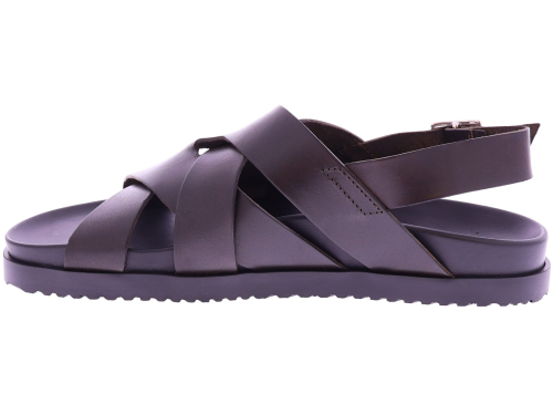 Bruin leren heren sandaal van The Sandals Factory. Deze M8036 is uitgevoerd in soepel, volnerfleer en voorzien van gekruiste banden met een comfortabele teenlus voor een stevige, luchtige pasvorm. Het voetbed is volledig met leer bekleed, waardoor het zacht aanvoelt en zich prettig vormt naar de voet. De flexibele zool biedt goede grip en maakt deze slipper ideaal voor dagelijks zomers draaggemak. Ontdek ook de andere heren sandalen van The Sandals Factory bij Klijsen.