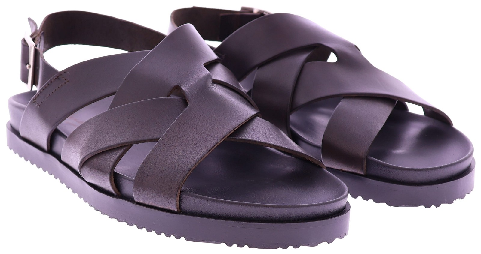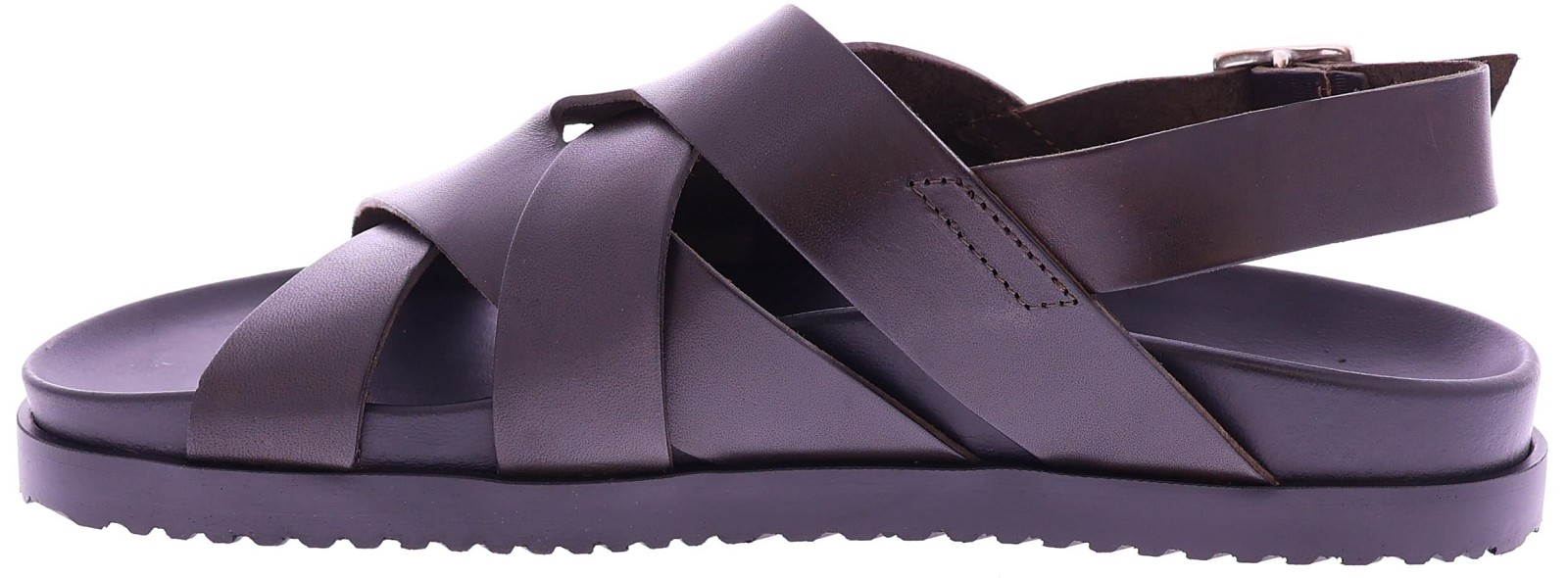 Bruin leren heren sandaal van The Sandals Factory. Deze M8036 is uitgevoerd in soepel, volnerfleer en voorzien van gekruiste banden met een comfortabele teenlus voor een stevige, luchtige pasvorm. Het voetbed is volledig met leer bekleed, waardoor het zacht aanvoelt en zich prettig vormt naar de voet. De flexibele zool biedt goede grip en maakt deze slipper ideaal voor dagelijks zomers draaggemak. Ontdek ook de andere heren sandalen van The Sandals Factory bij Klijsen.