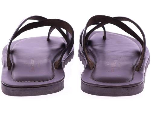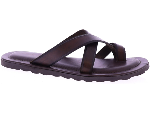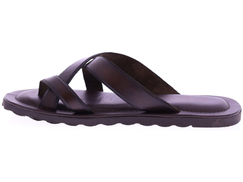 Bruin leren heren slipper van The Sandals Factory. Deze M5003 is uitgevoerd in soepel, volnerfleer en voorzien van gekruiste banden met een teenslipperconstructie voor een luchtige en stabiele pasvorm. De zachte lederen binnenzijde zorgt voor comfortabel draaggemak, terwijl het licht gevoerde voetbed ondersteuning biedt bij dagelijks gebruik. De flexibele zool geeft goede grip en maakt deze slipper ideaal voor warme zomerse dagen. Ontdek ook de andere heren slippers van The Sandals Factory bij Klijsen.