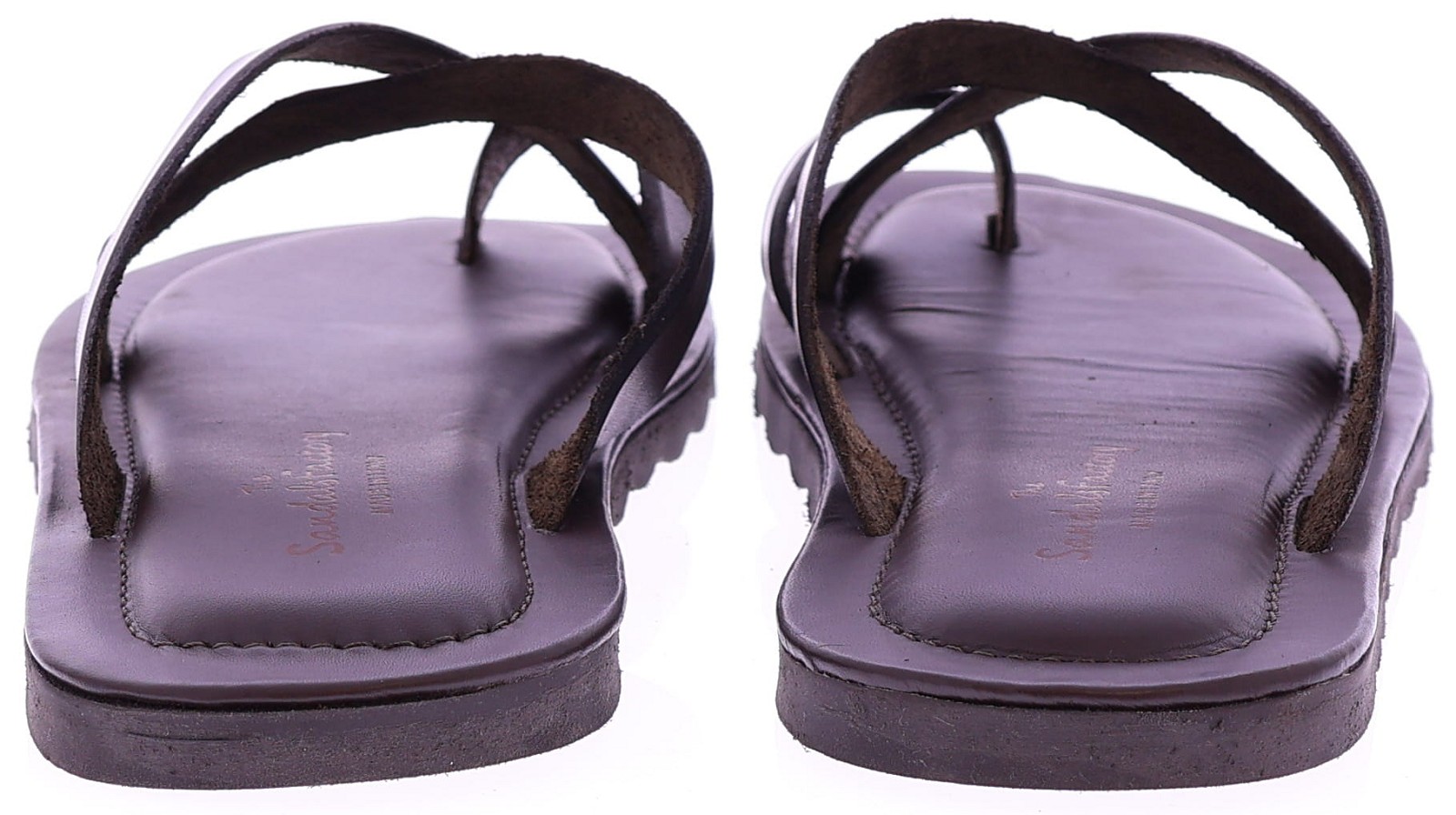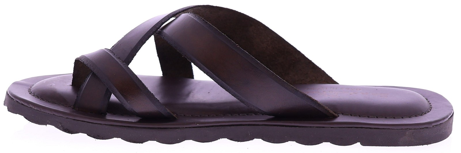 Bruin leren heren slipper van The Sandals Factory. Deze M5003 is uitgevoerd in soepel, volnerfleer en voorzien van gekruiste banden met een teenslipperconstructie voor een luchtige en stabiele pasvorm. De zachte lederen binnenzijde zorgt voor comfortabel draaggemak, terwijl het licht gevoerde voetbed ondersteuning biedt bij dagelijks gebruik. De flexibele zool geeft goede grip en maakt deze slipper ideaal voor warme zomerse dagen. Ontdek ook de andere heren slippers van The Sandals Factory bij Klijsen.