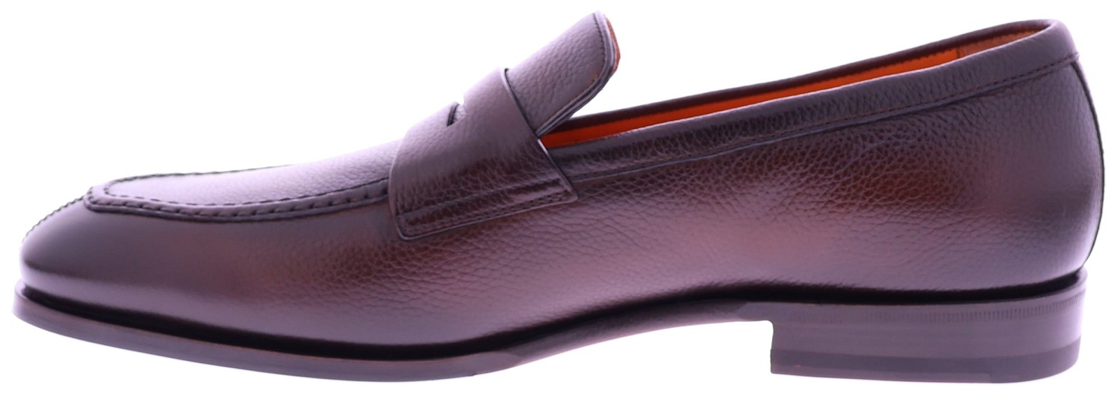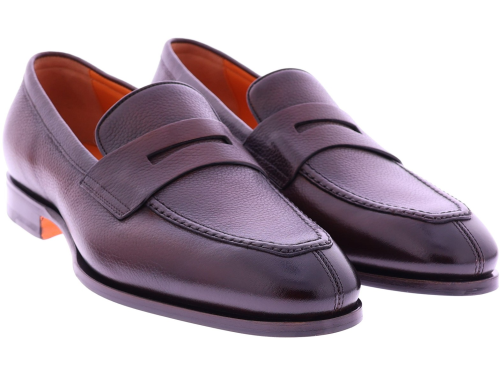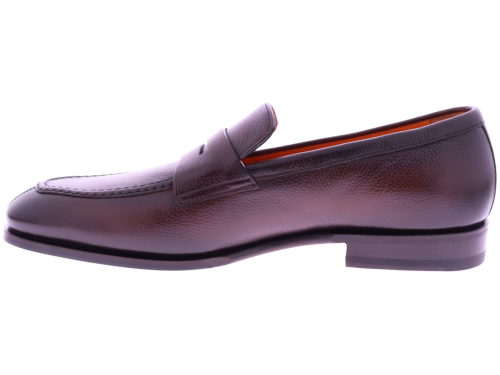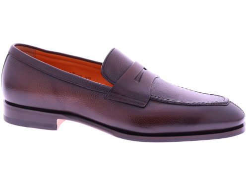 Bruine leren heren loafer van Santoni. Deze Adrian is uitgevoerd in soepel generfd leer en voorzien van een klassieke penny-strap voor een tijdloze, verfijnde uitstraling. De elegante leest en zachte voering bieden hoog draagcomfort, terwijl de subtiele glans en perfecte Italiaanse afwerking het model een luxueuze finesse geven. Ideaal voor heren die stijl, klasse en dagelijkse elegantie waarderen.