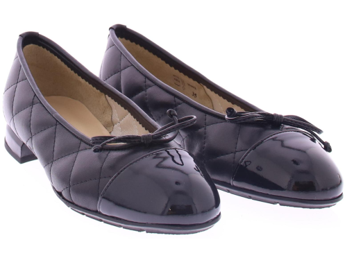Zwarte ballerina schoenen van het merk Brunate. De schoenen zijn van zeer zacht nappaleer met een softlak neus met een subtiele strik. De voering is van leer en de zool van soepel rubber voor extra loopcomfort