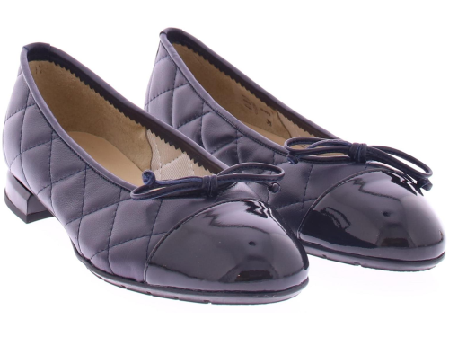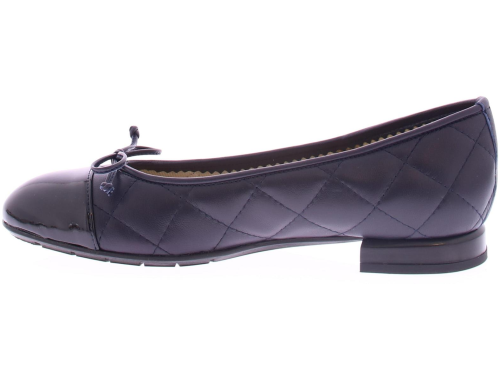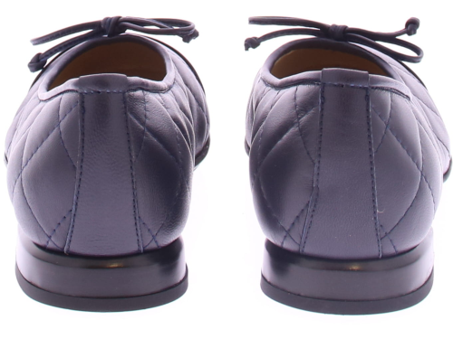 Donkerblauwe ballerina schoenen van het merk Brunate. De schoenen zijn van zeer zacht nappaleer met een softlak neus met een subtiele strik. De voering is van leer en de zool van soepel rubber voor extra loopcomfort.