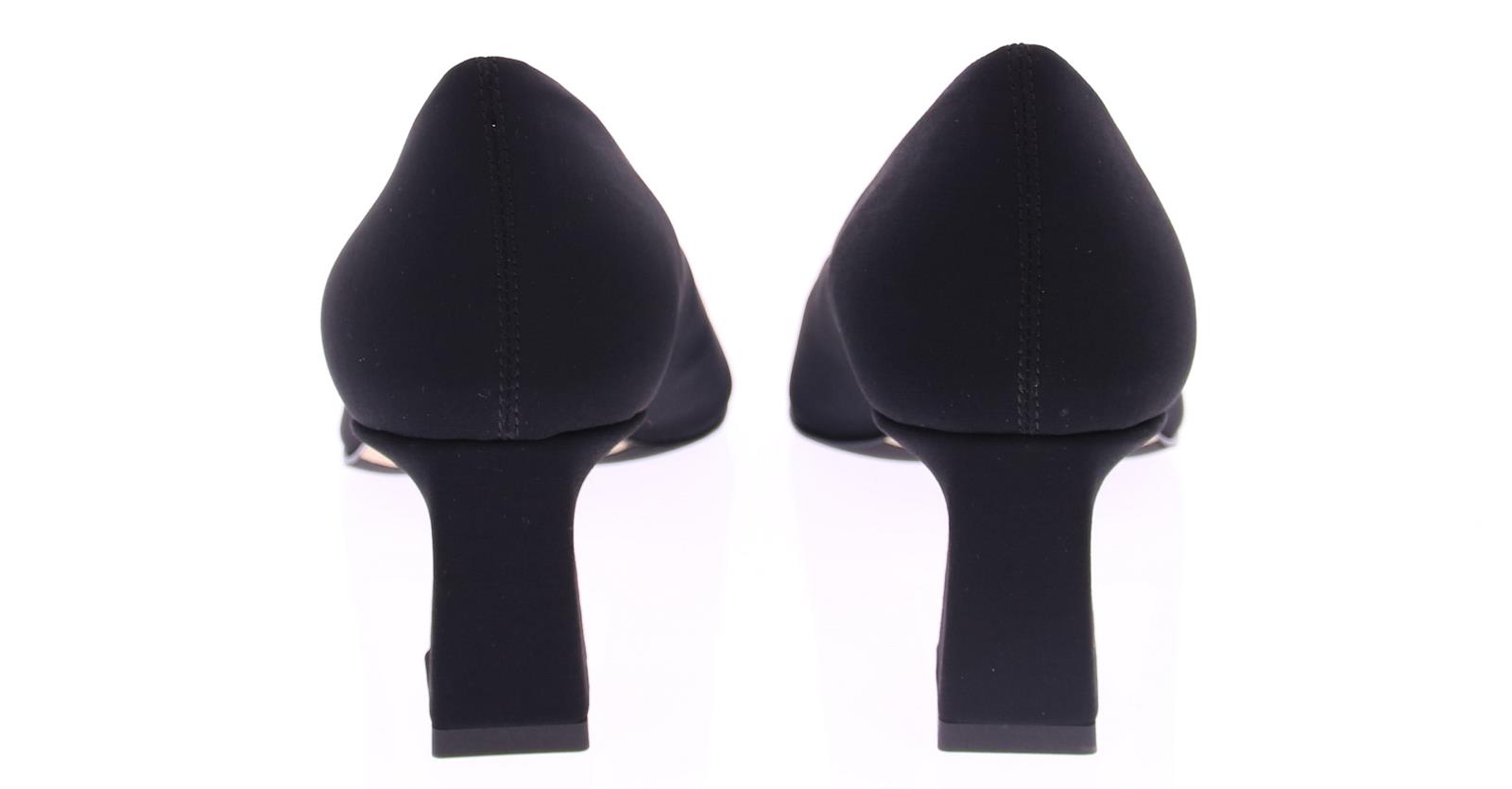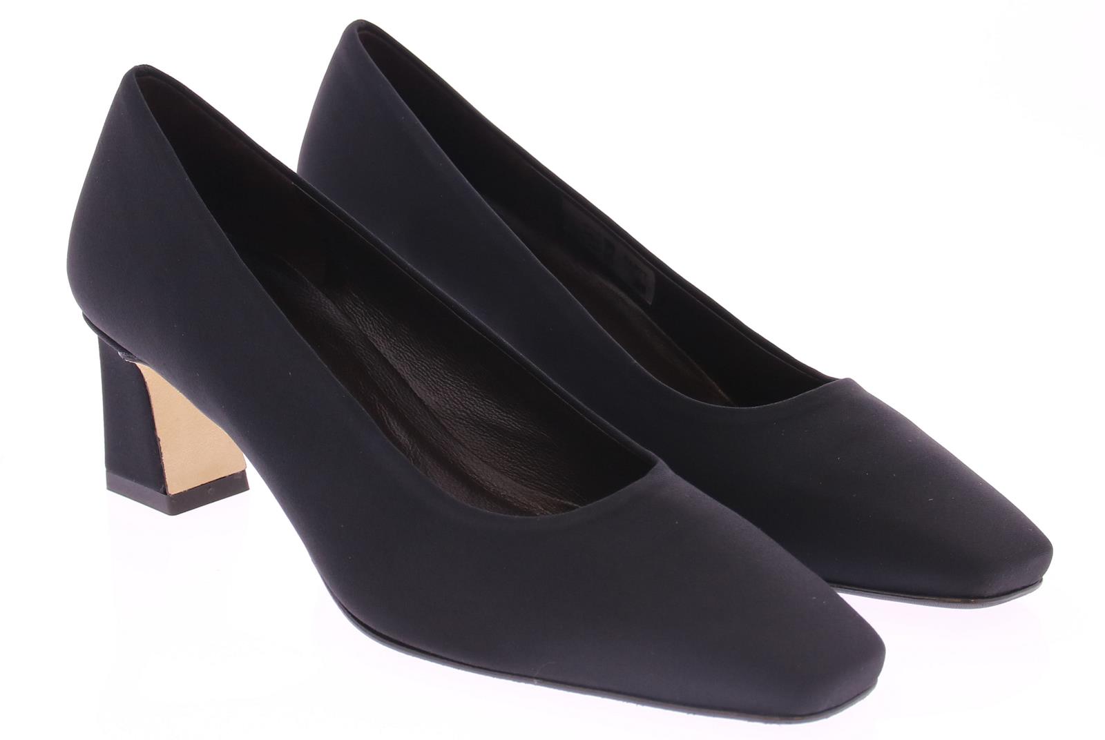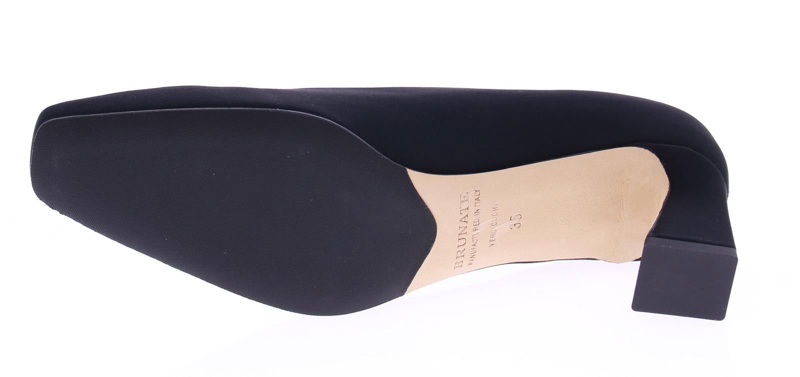 Een elegante damespump van het merk Brunate, uitgevoerd in zwarte stof met een carre neus. De pump heeft een verfijnde rechte hak van 5 cm, die aan de binnenkant subtiel naar binnen loopt voor een unieke en stijlvolle uitstraling. Perfect voor zowel formele gelegenheden als casual-chique outfits, biedt deze schoen een verfijnde balans tussen comfort en design. Een tijdloze keuze voor de moderne vrouw.