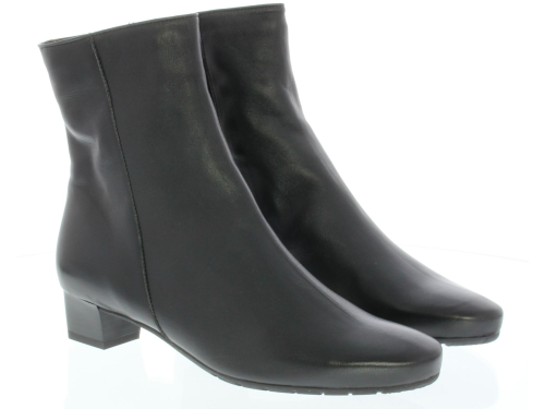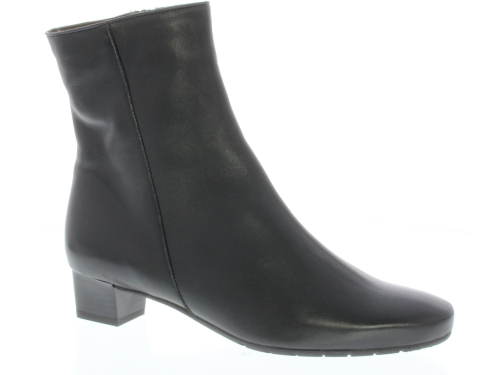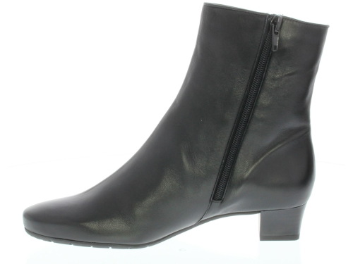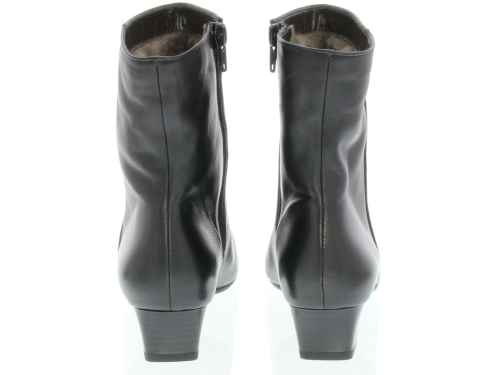 Zwart leren dames enkellaars van Brunate. De laars is gemaakt van zeer zacht kalfsleer, heeft een rits aan de binnenzijde van de enkel en een rubber zool. Het laarsje is helemaal gevoerd met lamsvacht wat de eigen lichaamstemperatuur vasthoudt.