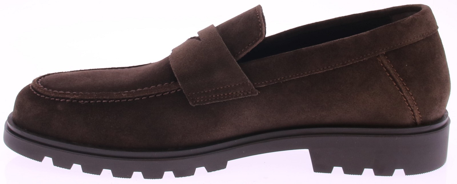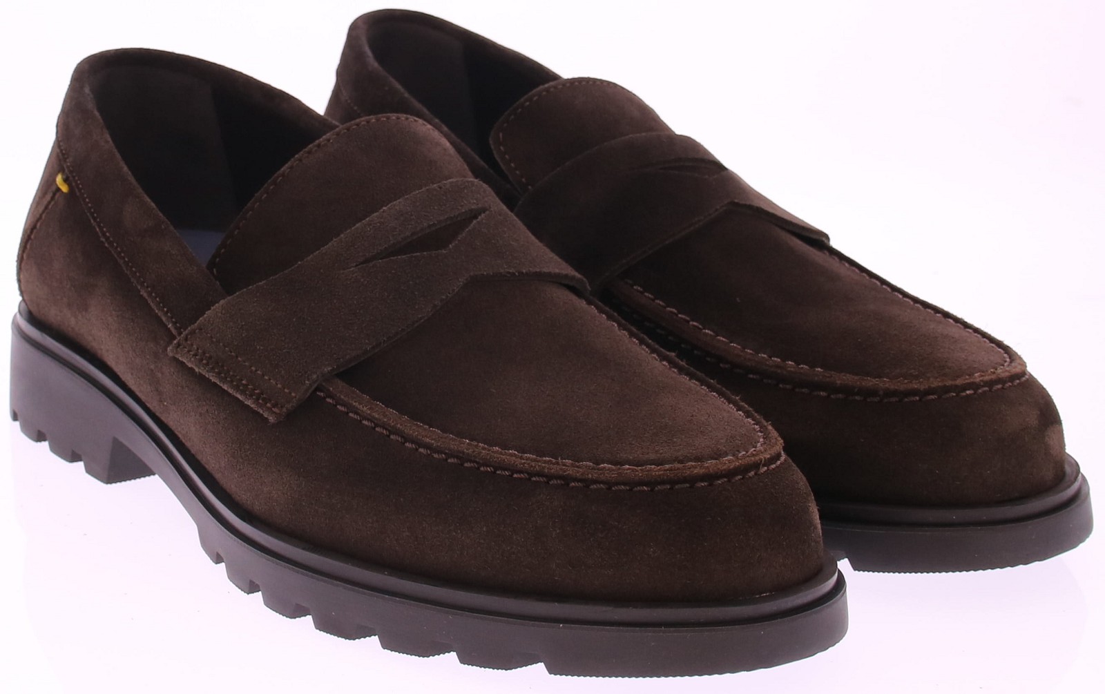 Heren instapper in bruin suède op een sportieve rubber profiel zool van het spaanse merk Calce. De schoen heeft een leren voering. Qua pasvorm is Calce altijd erg goed met zijn loafers.