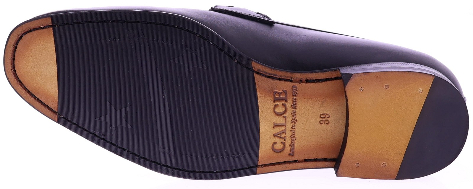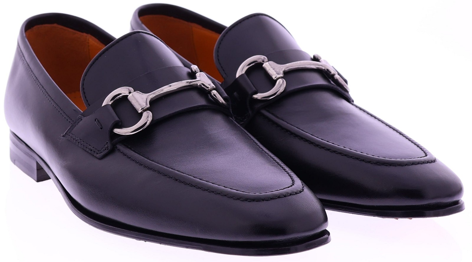 Zwarte leren herenschoen van Calce. Deze verfijnde loafer is uitgevoerd in glad kalfsleer en afgewerkt met een stijlvol metalen paardenbit over de wreef. De leren voering zorgt voor een hoog draagcomfort, terwijl de leren zool met rubber op het slijtvlak extra grip biedt. Een tijdloze en elegante schoen die moeiteloos past bij zowel formele als casual gelegenheden.
