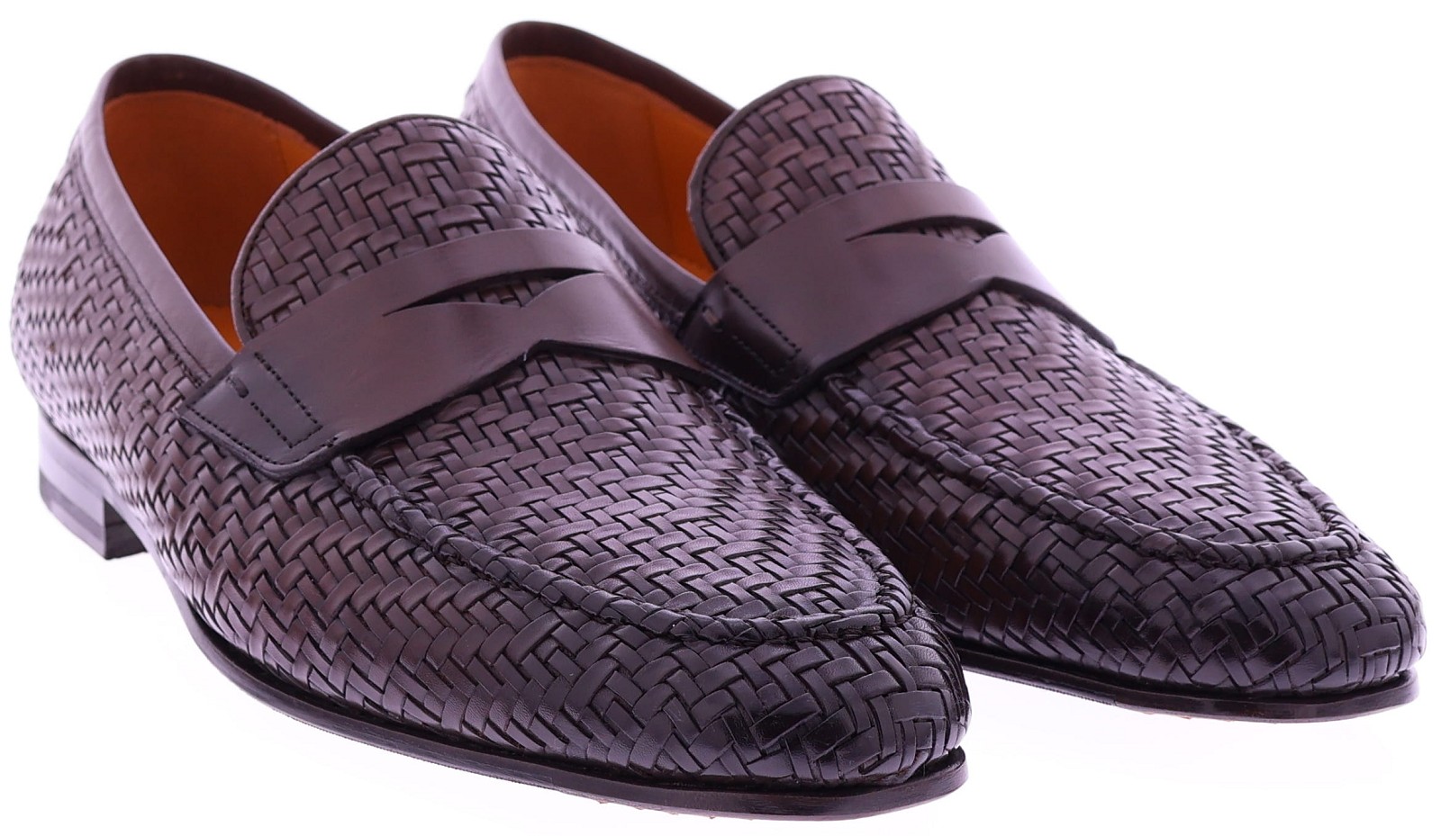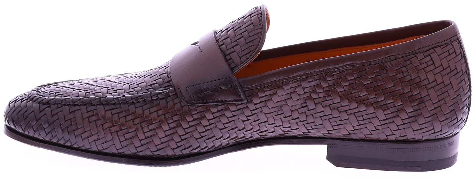 Donkerbruine gevlochten leren herenschoen van Calce. Deze elegante loafer is vervaardigd uit gevlochten leer en afgewerkt met een klassieke pennyband op de wreef. De schoen heeft een leren voering en een leren zool met rubber op het slijtvlak, wat zorgt voor extra grip en duurzaamheid. De ambachtelijke vlechtstructuur en het verfijnde ontwerp geven deze loafer een stijlvolle mediterrane uitstraling.
