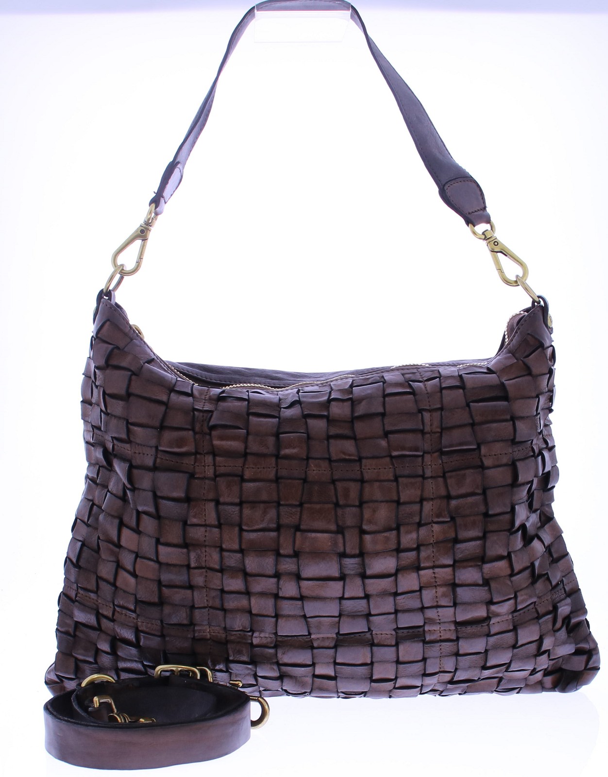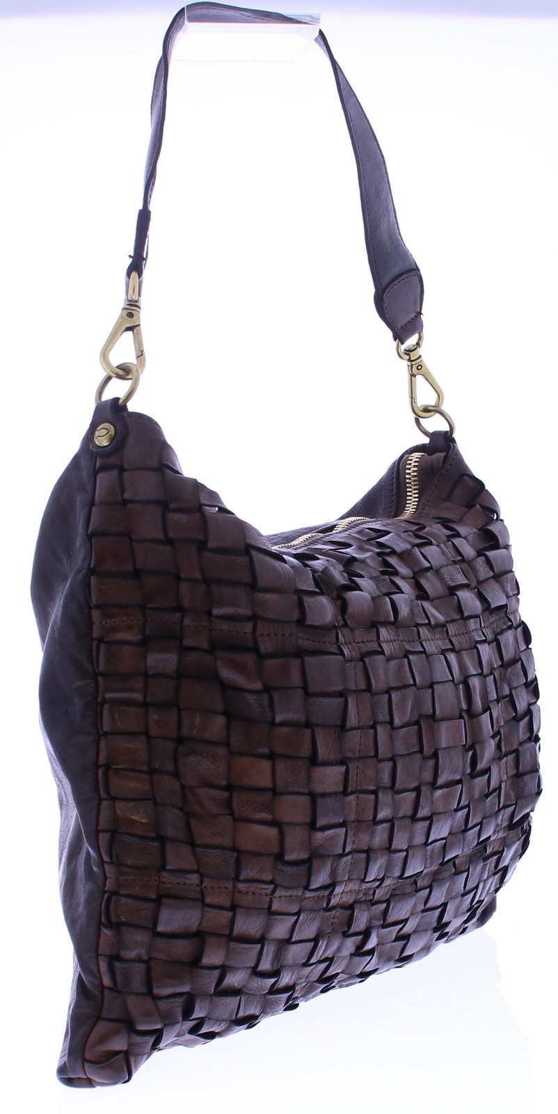 Ervaar het beste van Italiaans design met deze leren dames tas van Campomaggi in donkerbruin, handgemaakt in Italië van 100% natuurlijk geverfd rundleer, Het ruime hoofdcompartiment is volledig gevoerd met een stevige katoenen binnenzijde (90% katoen, 10% leer) en bestaat uit een extra afgesloten vak met ritssluiting en een speciale houder voor je mobiele telefoon, zodat al je spullen veilig en overzichtelijk zijn opgeborgen. De tas heeft aan de voorzijde een leer gevlochten patroon en de achterzijde is van glad leer. De tas sluit stevig af met een ritssluiting en kan op twee manieren gedragen worden: aan de leren handgrepen of met de verstelbare en afneembare schouderriem. Het formaat van de tas is B42 x D3 x H33 cm daardoor biedt deze tas voldoende ruimte voor uw laptop en meer. Elke tas wordt geleverd met een bijpassende katoenen stofzak en een verzorging set, zodat het leer zijn unieke uitstraling behoudt en met de jaren alleen maar mooier wordt.