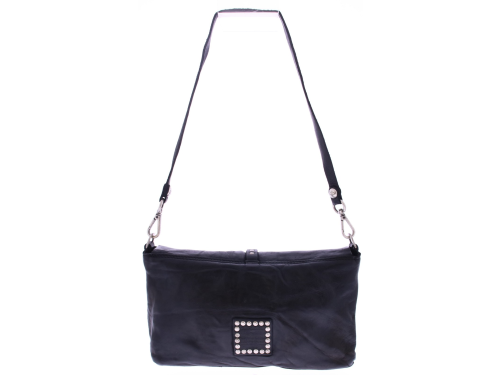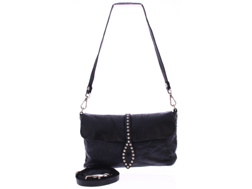 Ervaar het beste van Italiaans design met deze exclusieve leren dames tas van Campomaggi in zwart leer, handgemaakt in Italië van 100% natuurlijk geverfd rundleer, Deze compacte tas in combinatie met het decoratieve profiel van metalen studs geeft de tas een unieke en karaktervolle uitstraling. De binnenkant is volledig gevoerd en beschikt over één ruim hoofdvak en een praktisch afsluitbaar binnenvak ideaal voor het veilig opbergen van je essentials zoals telefoon, sleutels of make-up. Dankzij de magnetische drukknopsluiting is je tas in een handomdraai geopend of gesloten. De tas is uitgerust met een verstelbare en afneembare schouderriem, zodat je haar zowel als crossbody of clutch kunt dragen – perfect voor elke gelegenheid, van een dagje shoppen tot een chique avond uit. Formaat van de tas B23 x D5 x H13 cm. Elke tas wordt geleverd met een bijpassende katoenen stofzak en een verzorging set, zodat het leer zijn unieke uitstraling behoudt en met de jaren alleen maar mooier wordt.