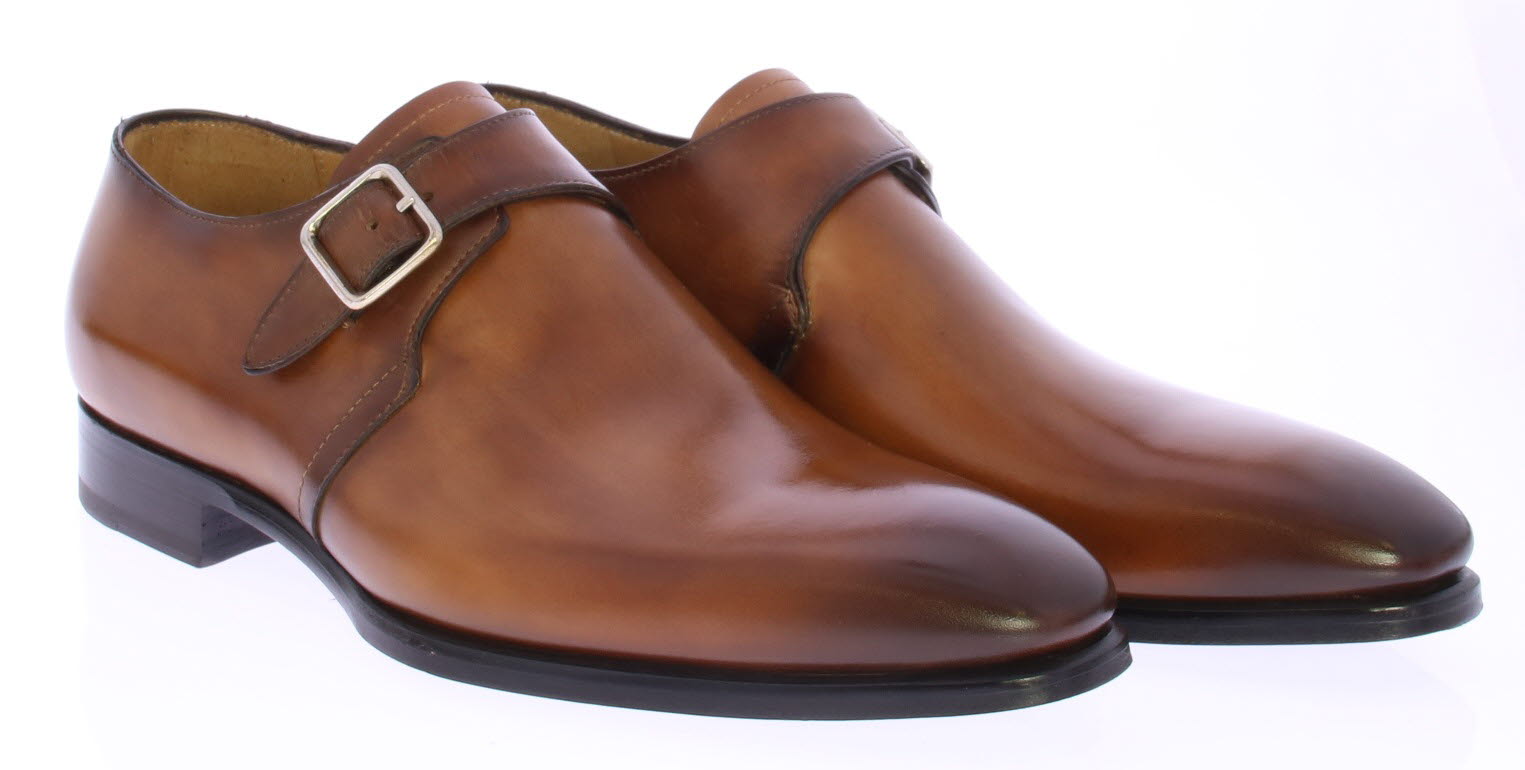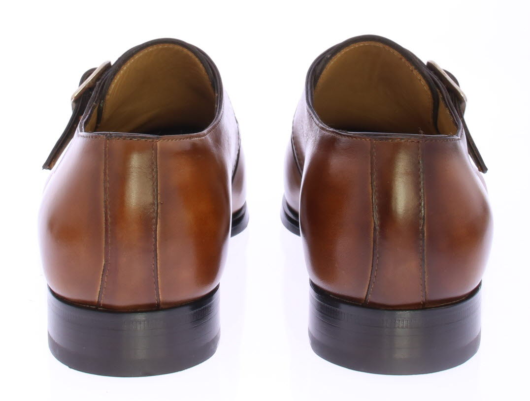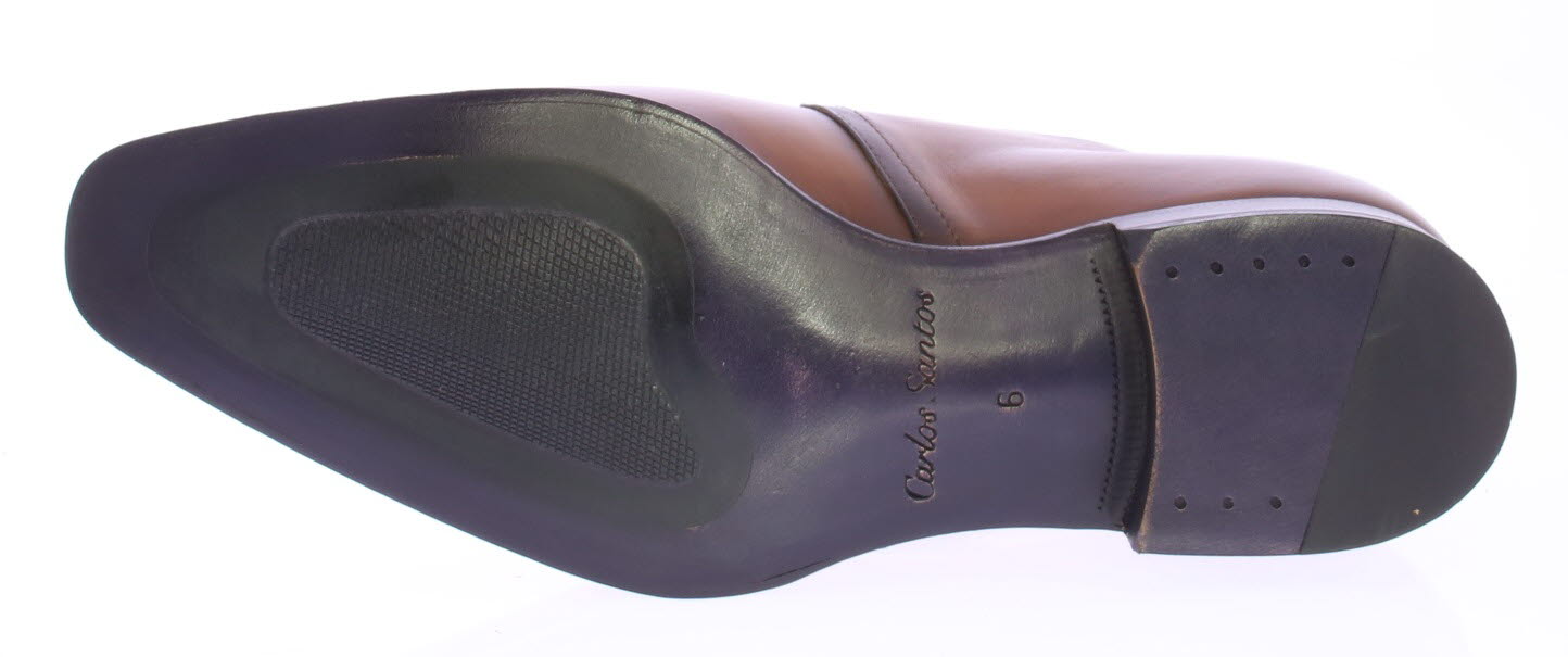 Middenbruin leren heren gespschoen van Carlos Santos. Een mooie uitgepoetste- een met de hand uitgewerkte schaduwfinish schoen. Deze gespschoen is uitgevoerd op een luxe leren zool en leren binnenwerk.