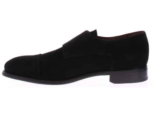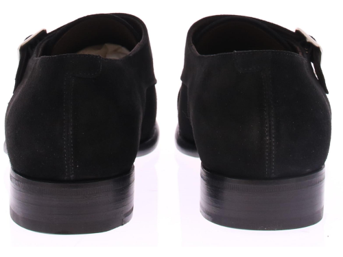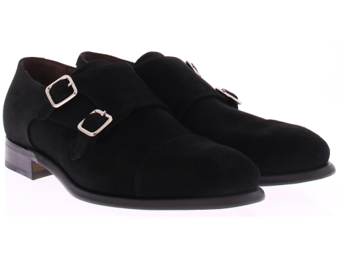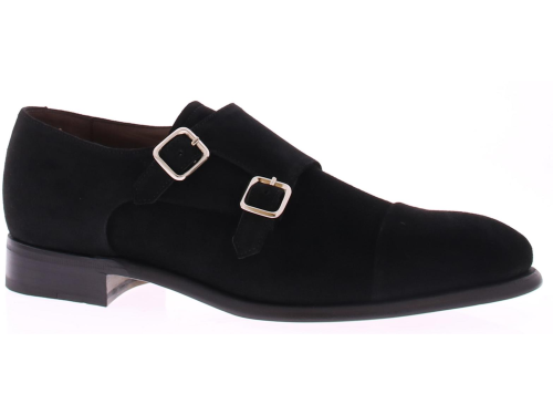 Heren dubbelgesp in zwart suede op leren zool. De schoen is heeft een blake doorgenaaide zool en leren voering.