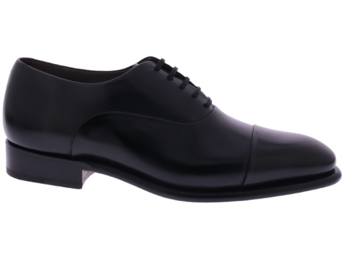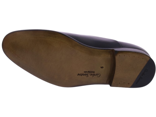 Zwarte leren heren veterschoen van Carlos Santos. Deze klassieke Oxford is vervaardigd van hoogwaardig kalfsleer en met de hand afgewerkt in Portugal. Dankzij de traditionele Goodyear-welted constructie biedt de schoen niet alleen een verfijnde uitstraling, maar ook een duurzame kwaliteit en optimaal draagcomfort. De subtiele belijning, gladde neus en elegante glans maken dit model een onmisbare keuze voor formele gelegenheden. Een schoen die vakmanschap en tijdloze klasse perfect verenigt. Dit model heeft een vast voetbed.