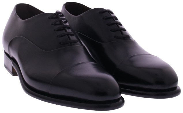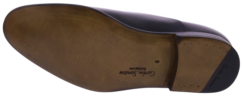 Zwarte leren heren veterschoen van Carlos Santos. Deze klassieke Oxford is vervaardigd van hoogwaardig kalfsleer en met de hand afgewerkt in Portugal. Dankzij de traditionele Goodyear-welted constructie biedt de schoen niet alleen een verfijnde uitstraling, maar ook een duurzame kwaliteit en optimaal draagcomfort. De subtiele belijning, gladde neus en elegante glans maken dit model een onmisbare keuze voor formele gelegenheden. Een schoen die vakmanschap en tijdloze klasse perfect verenigt. Dit model heeft een vast voetbed.