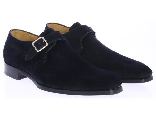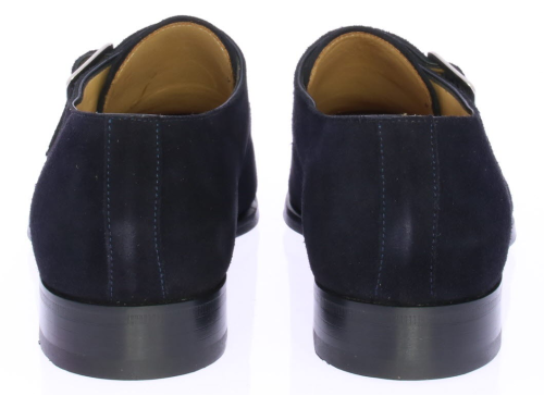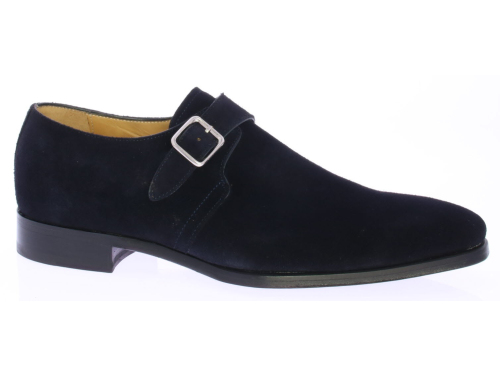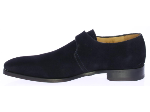 Donker blauwe suede heren gespschoen van Carlos Santos. Deze schoen heeft leren zolen met een rubberen inzet.