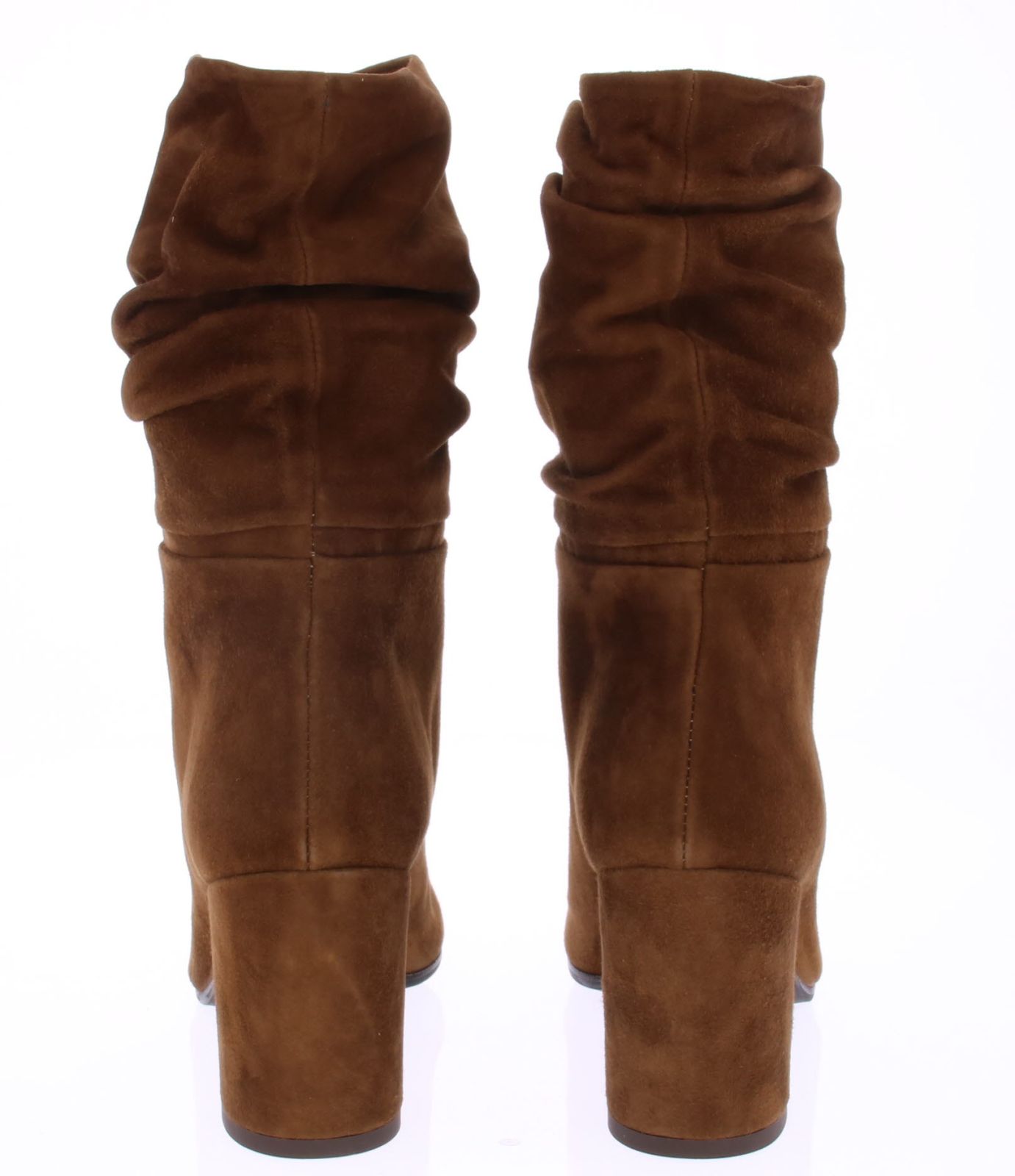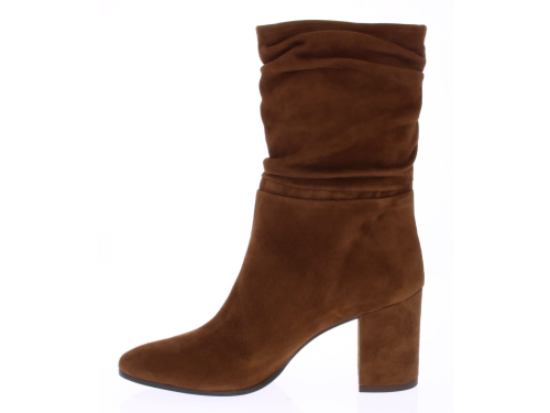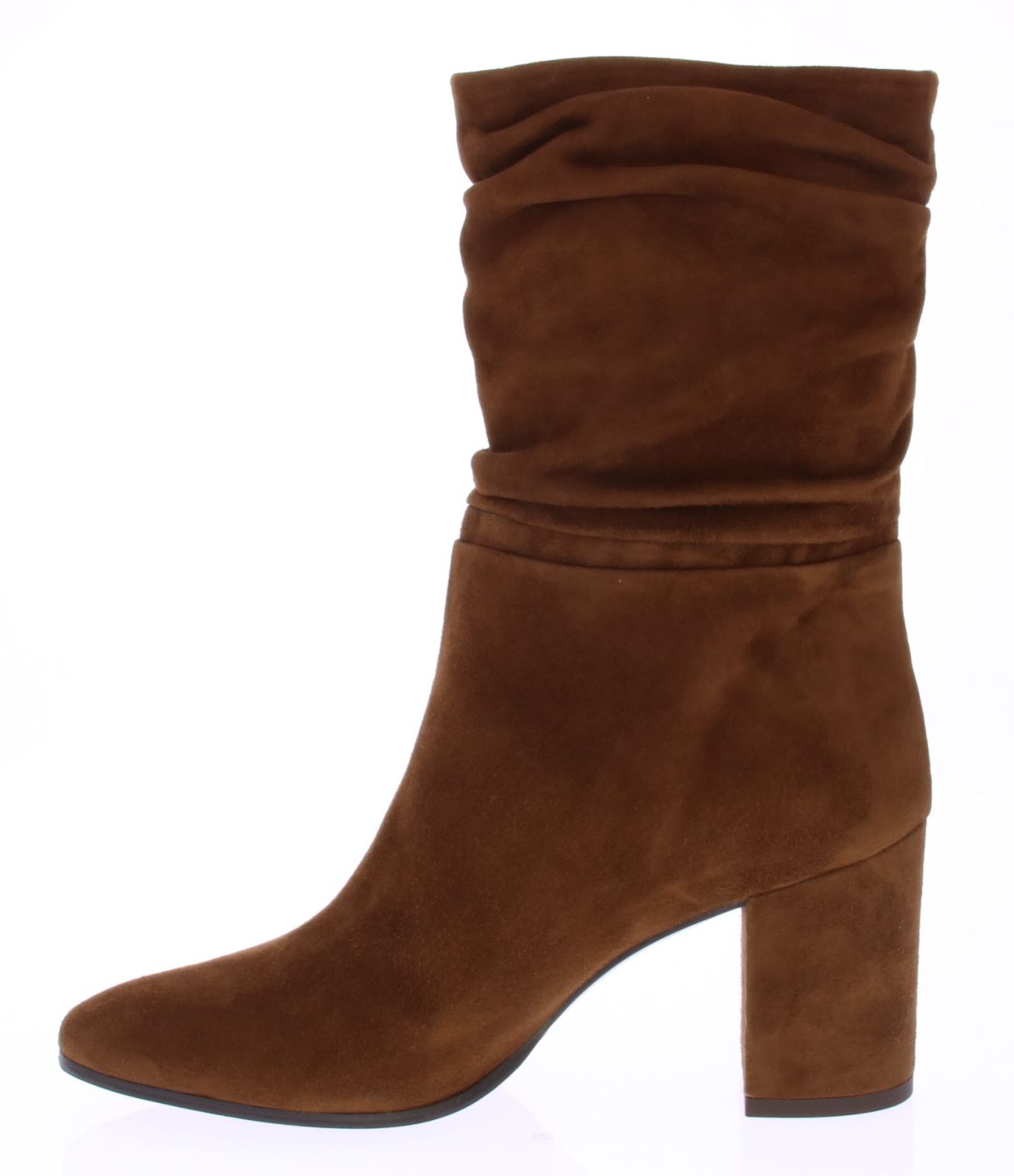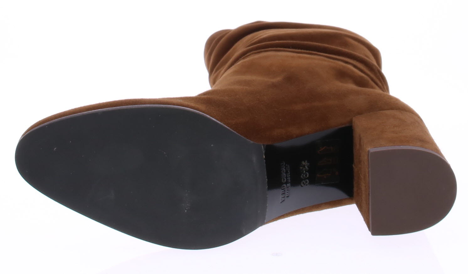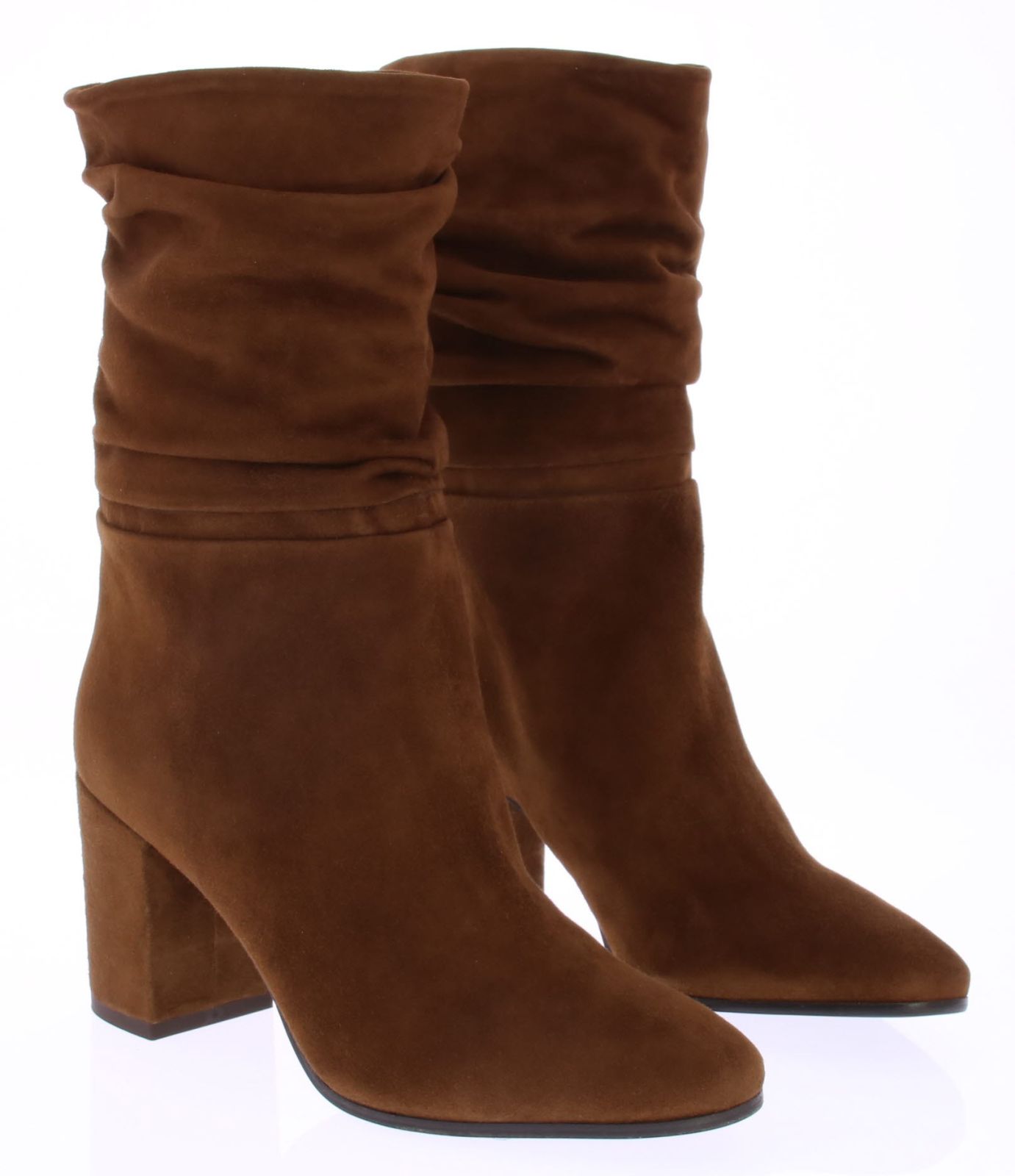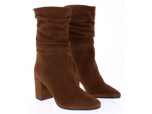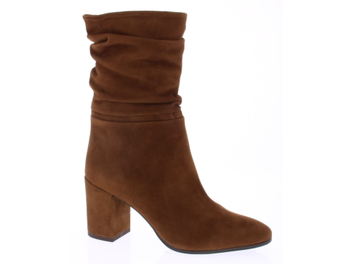 Dames geplooid 3/4 laarsje van Di Lauro in het cognac suede op een blokhak van 7 cm.
