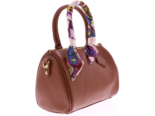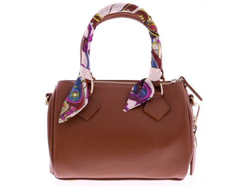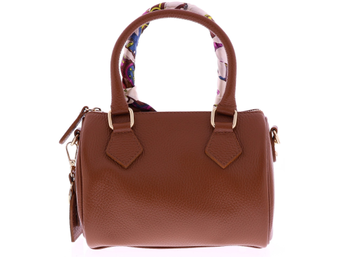 Cognackleurige leren damestas van Di Lauro, model Donna 001. Deze compacte tas is uitgevoerd in soepel leer met een subtiele structuur en heeft een stijlvolle, vrouwelijke uitstraling. Het korte handvat is omwikkeld met een bijpassende foulard voor een elegante finishing touch. Daarnaast wordt er een lang hengsel meegeleverd, zodat de tas ook crossbody gedragen kan worden. De afmetingen zijn 22 cm breed, 16 cm hoog en 12 cm diep: perfect voor dagelijks gebruik . Ontdek ook de andere dames tassen van Di Lauro bij Klijsen.