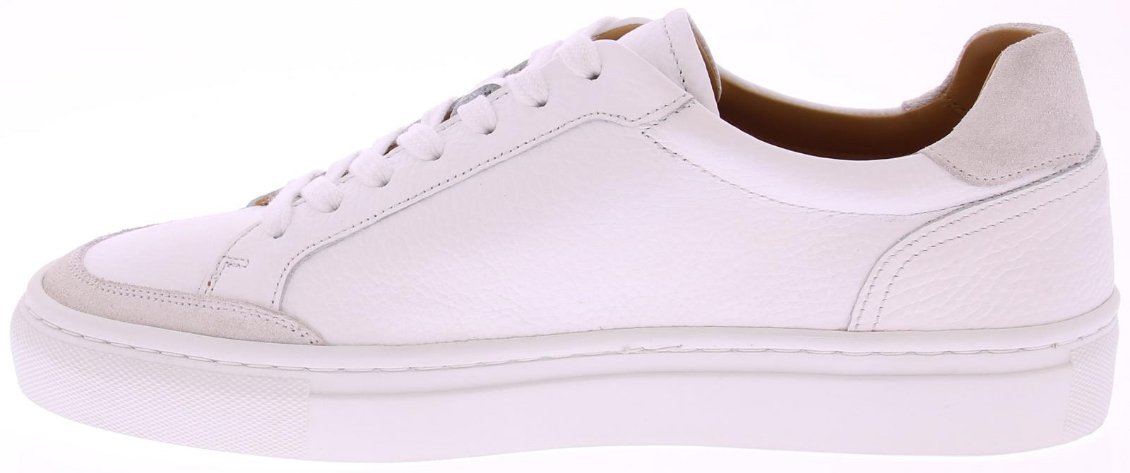 Heren sneaker van het Britse merk Corden's. Deze sneaker artikel Marble is gemaakt in wit kalfs leer en suede met een kalfsleren voering en een uitneembaar voetbed. De zool is van wit rubber. Deze schoen valt wat kleiner op de maat. De meeste mensen betellen een maat groter.