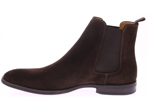 Heren enkelboot van het Engelse merk Corden's. artikel SOHO. De schoen is gemaakt van donker bruin suède en heeft een kalfsleren voering. het onderwerk is van rubber en netjes doorgenaaid. De pasvorm van deze schoen is zeer goed.