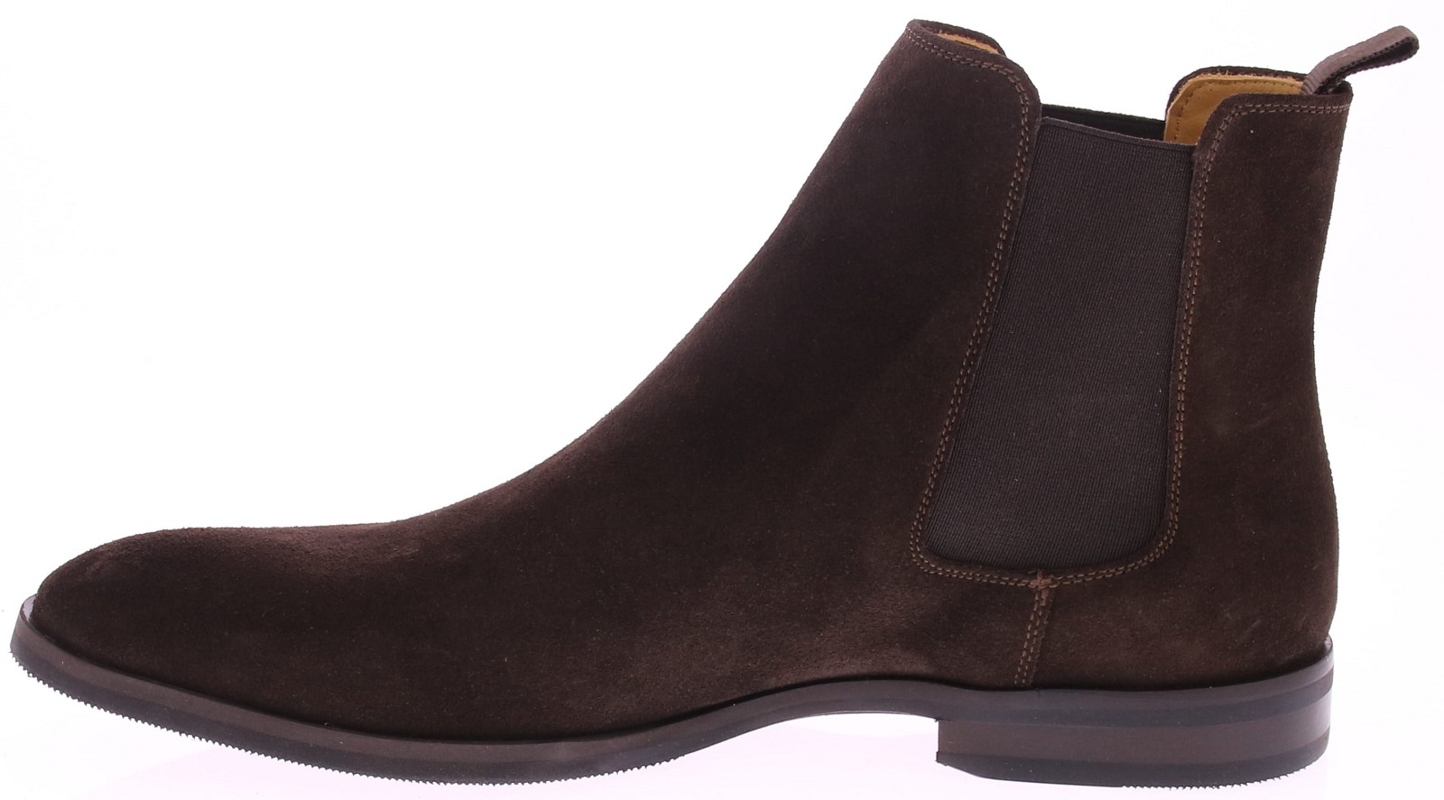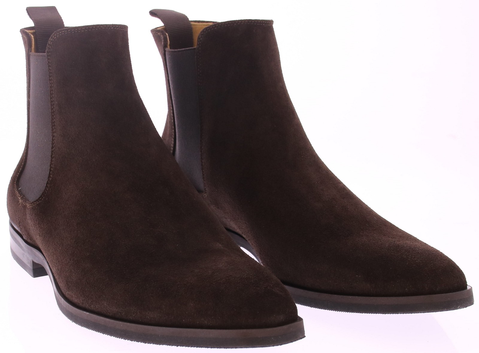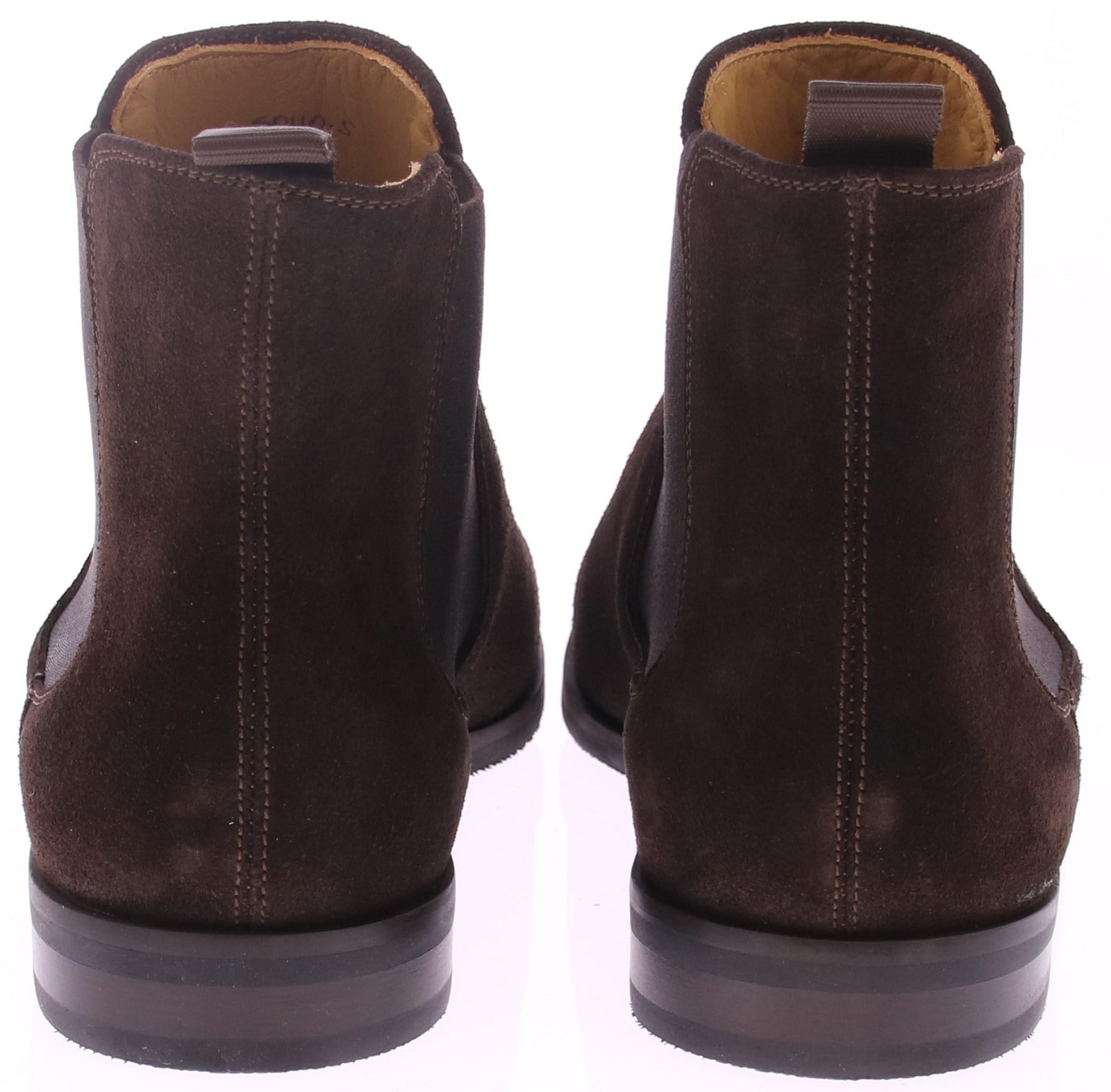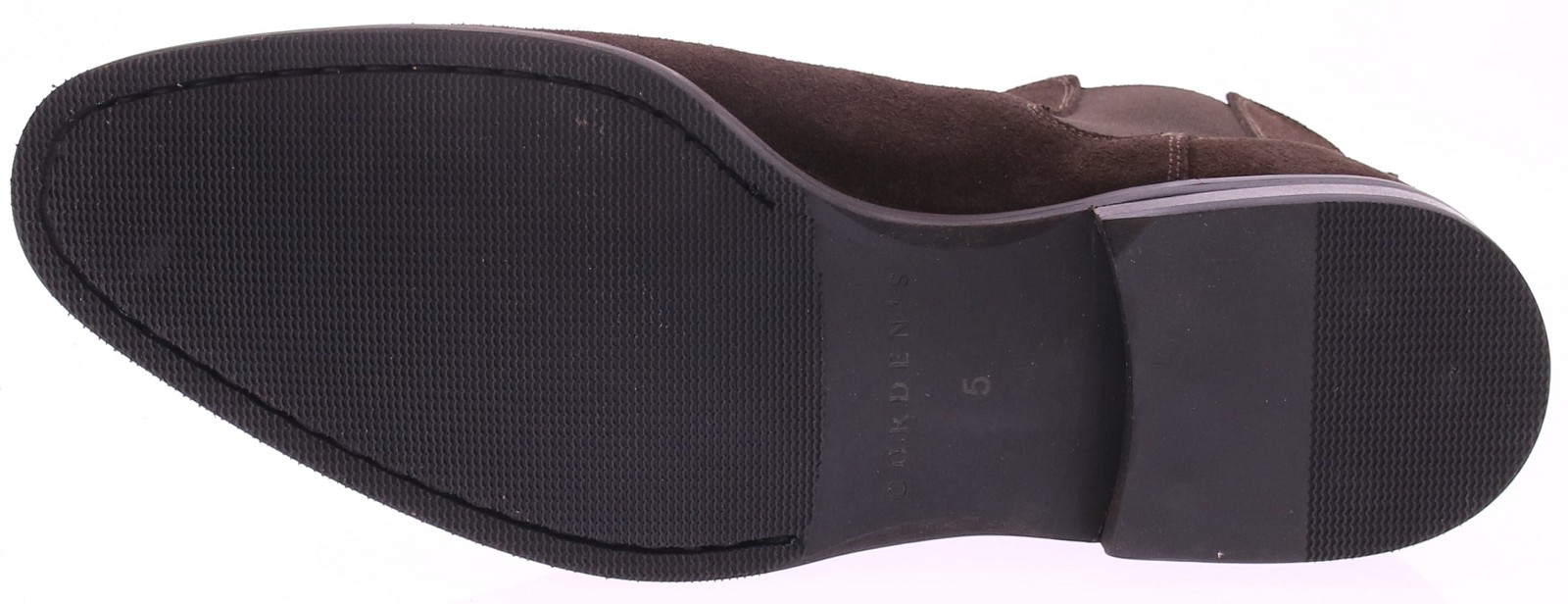 Heren enkelboot van het Engelse merk Corden's. artikel SOHO. De schoen is gemaakt van donker bruin suède en heeft een kalfsleren voering. het onderwerk is van rubber en netjes doorgenaaid. De pasvorm van deze schoen is zeer goed.