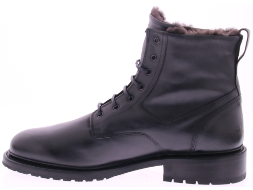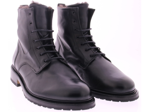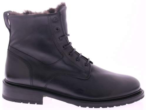 Cordwainer Leren Winterboot Zwart – Warm, Robuust en Stijlvol Maak kennis met deze robuuste én stijlvolle herenboot van Cordwainer, uitgevoerd in sterk zwart buffelleer en gevoerd met zachte, warme wollen vacht. Deze winterklare veterboot combineert een tijdloos design met hoogwaardige materialen en optimaal comfort, zelfs tijdens de koudste dagen van het jaar. De buitenkant is vervaardigd uit duurzaam buffelleer dat bekendstaat om zijn weerbestendigheid en stoere karakter. De warme wollen voering houdt je voeten heerlijk geïsoleerd, terwijl de rubberen profielzool zorgt voor uitstekende grip op winterse ondergronden.