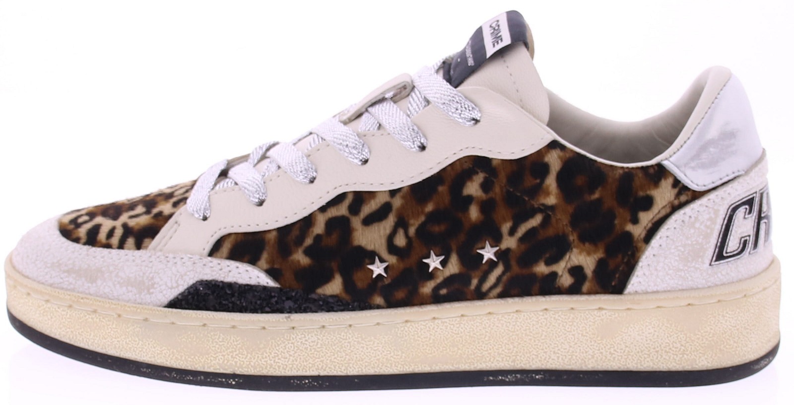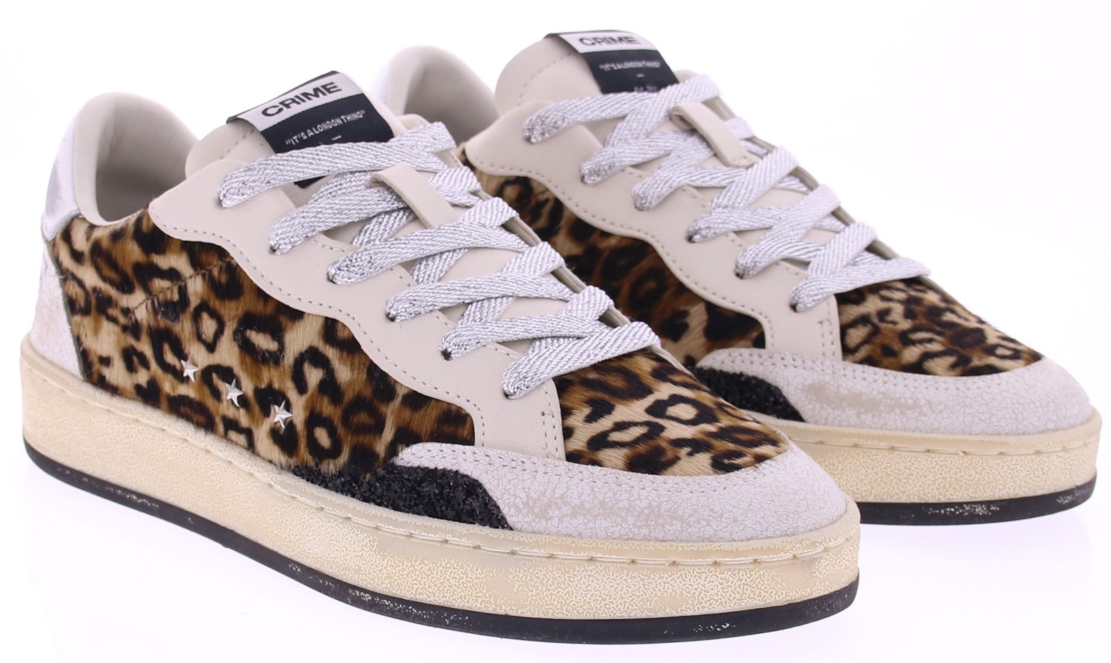 Dames sneaker van Crime London. Deze sneaker de 25200AA8.68 heeft een bovenwerk van suede, leer en pony, en heeft leuke details van panterprint. De voering is gemaakt van zacht textiel en de zool is uitneembaar.
