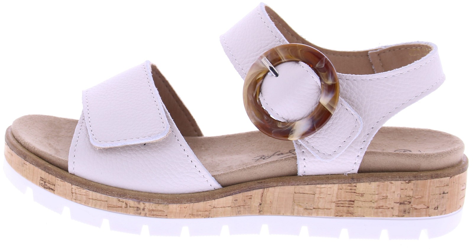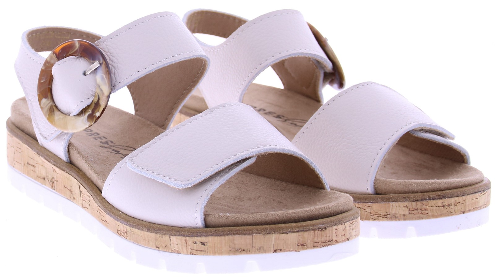 Roomkleurig leren dames sandalen van Cypres. Dit model de Wanda heeft een lichte sleehak van 2 cm voor subtiele hoogte en stabiliteit. De verstelbare klittenbandsluiting zorgt voor een perfecte pasvorm, terwijl de grote ronde gesp sluiting een elegant detail toevoegt. Het zachte uitneembare voetbed en de lichte loopzool bieden optimaal draagcomfort, ideaal voor lange zomerdagen vol stijl en gemak.