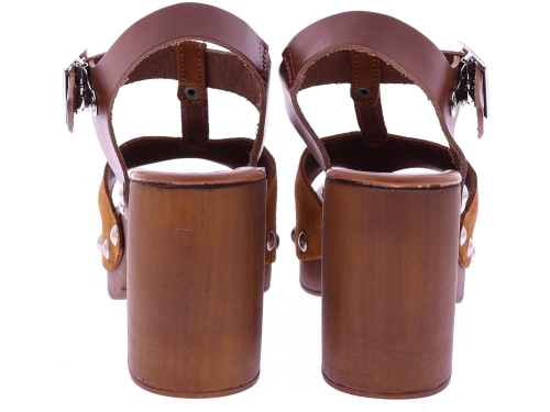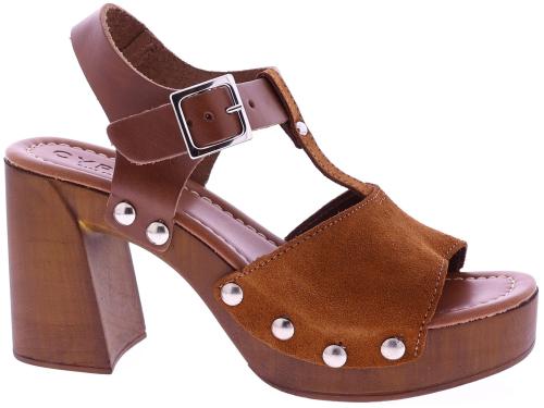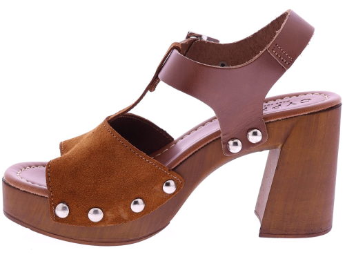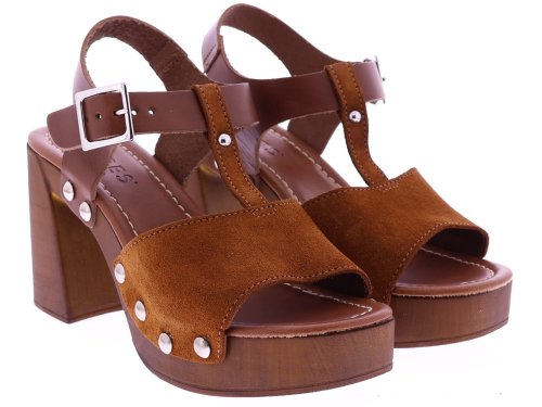 Cognackleurige suède dames sandalen van Cypres, model Zarita. Deze sandaal heeft een T-brede band over de wreef met studs aan de zijkanten. De sandaal heeft een plateau van 3 cm en een hakhoogte van 8 cm. Het voetbed is zacht afgewerkt voor prettig draagcomfort, ideaal voor zomerse dagen en een stijlvolle outfit. "Ontdek ook de andere dames sandalen van Cypres bij Klijsen."