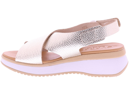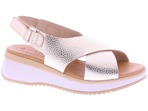 Goudkleurige leren dames sandalen van Cypres, model Zalicia. Deze sandaal is gemaakt van leer met een fijne structuur en heeft een kruisband die zorgt voor een goede en ondersteunende pasvorm. Het superzachte voetbed heeft een fijn draagcomfort, ideaal voor dagelijks gebruik. De hielsluiting heeft een klittenbandje waarmee de sandaal gemakkelijk is te verstellen. De sleehak heeft een hoogte van 3 cm. Leuk te combineren met een luchtige zomerjurk of een casual broek. Ontdek ook de andere dames sandalen van Cypres bij Klijsen.