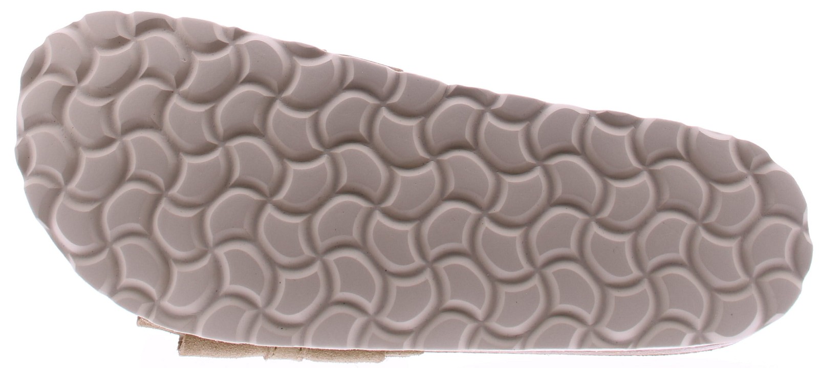 Beige suède dames slippers van Cypres, model Zane. Deze slipper heeft een zachte suède band met speelse plooien over de wreef en een voorgevormd voetbed. De lichte rubberen onderzool zorgt voor soepel en prettig loopcomfort. Een leuke en veelzijdige slipper die perfect past bij zomerse outfits. Ontdek ook de andere dames slippers van Cypres bij Klijsen.