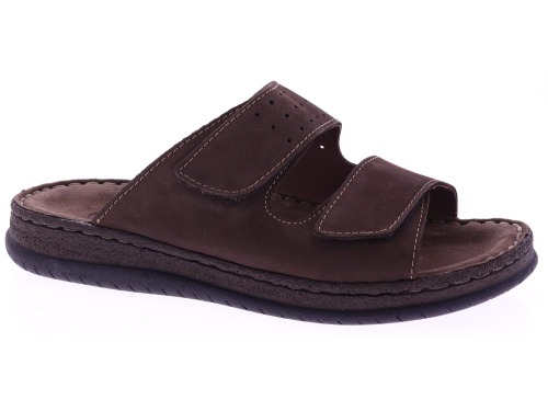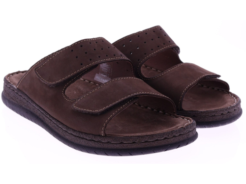 Bruin leren heren slipper van Cypres. Dit comfortabele model Zaki is uitgevoerd in soepel leer en voorzien van een zacht leren voetbed voor aangenaam dagelijks comfort. De twee verstelbare klittenbanden zorgen voor een makkelijk aanpasbare pasvorm, terwijl de stevige rubberzool goede grip en stabiliteit biedt. Een praktische en duurzame sandaal voor heren die houden van gemak en draagcomfort. Ontdek ook de andere heren sandalen van Cypres bij Klijsen.