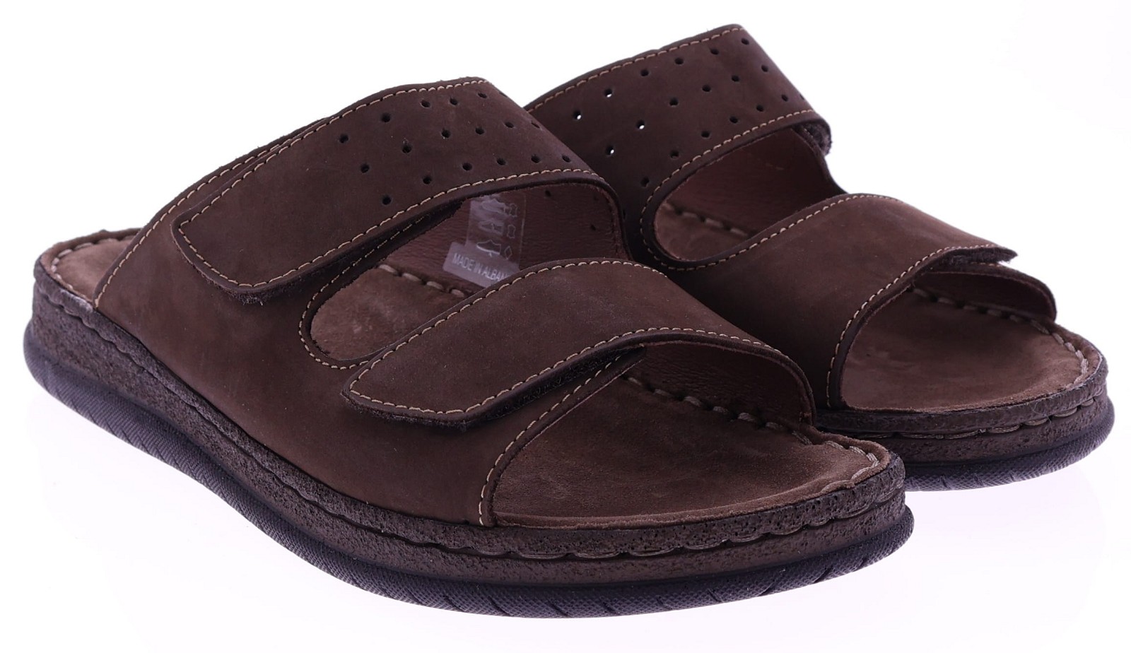 Bruin leren heren slipper van Cypres. Dit comfortabele model Zaki is uitgevoerd in soepel leer en voorzien van een zacht leren voetbed voor aangenaam dagelijks comfort. De twee verstelbare klittenbanden zorgen voor een makkelijk aanpasbare pasvorm, terwijl de stevige rubberzool goede grip en stabiliteit biedt. Een praktische en duurzame sandaal voor heren die houden van gemak en draagcomfort. Ontdek ook de andere heren sandalen van Cypres bij Klijsen.
