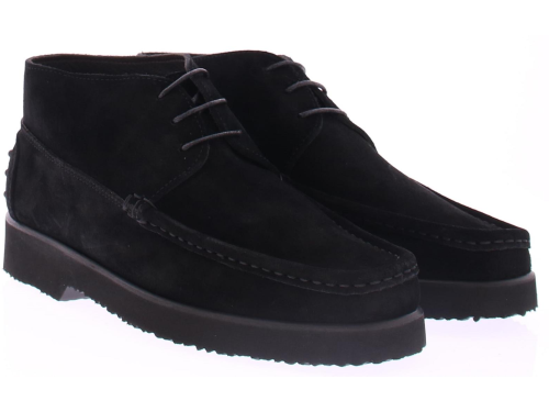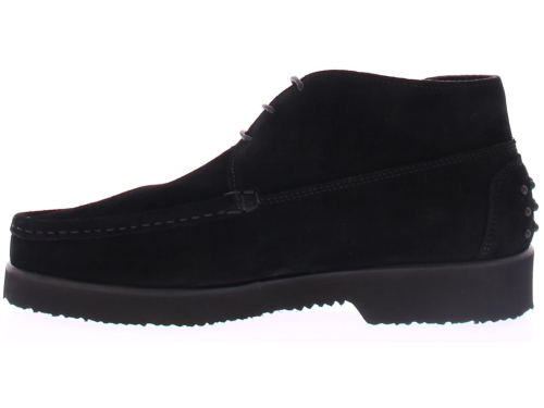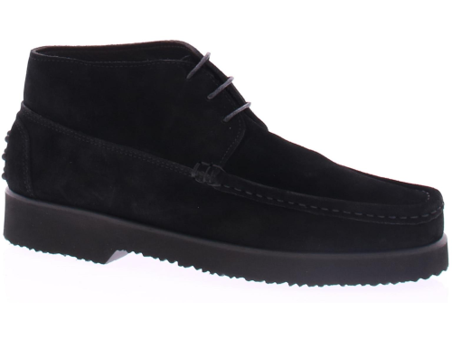 Zwarte suede heren veterschoen van Daniel Kenneth. Deze schoen is uitgevoerd in zwart suede en heeft een spiegel stiknaad over de neus lopen. De schoen komt op een rubberen zool. Achterop de hiel zitten rubberen dopjes. De schoen heeft een leren voering.