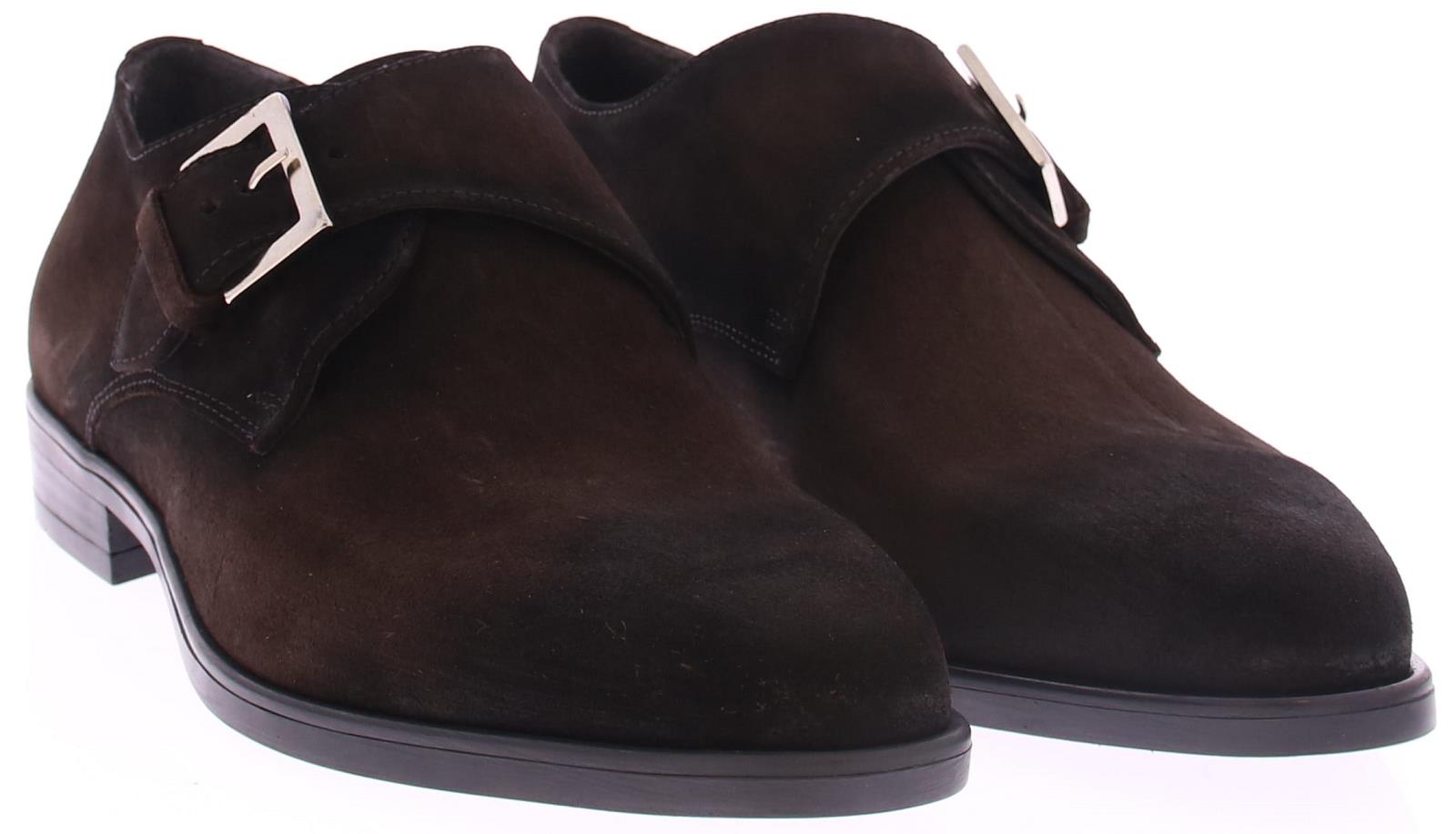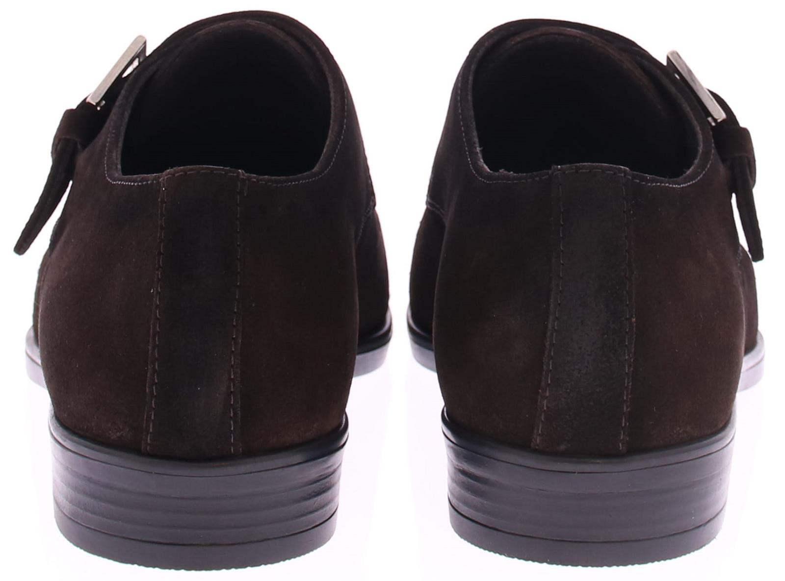 Heren enkele gespschoen van Daniel Kenneth op een rubber zool in donkerbruin suede met leren voering.