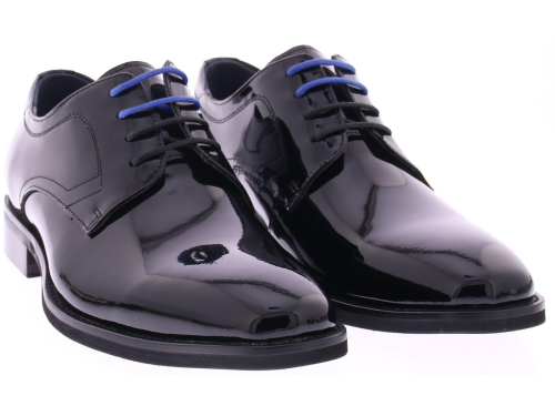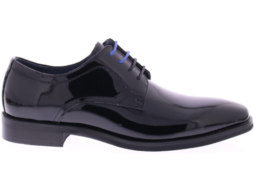 Daniel Kenneth lakschoen op rubber onderwerk met klepsluiting in zwart. De voering is van leer.