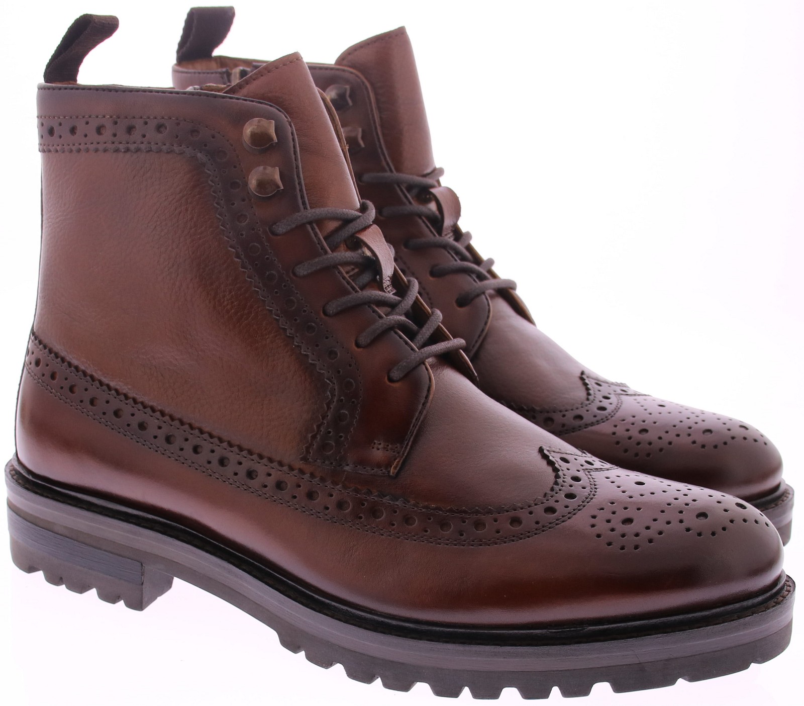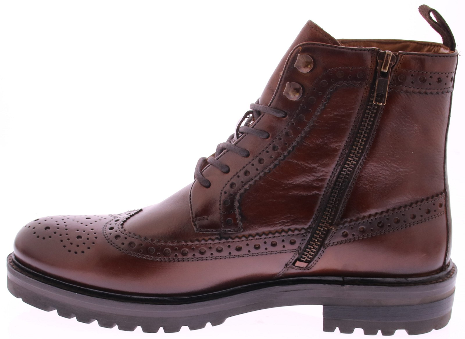 De Daniel Kenneth Yoshua is een karaktervolle veterboot die klassiek vakmanschap combineert met moderne functionaliteit. Uitgevoerd in rijk cognackleurig leer met geperforeerde brogue-details en voorzien van een praktische rits, biedt deze schoen stijl, comfort én gemak.