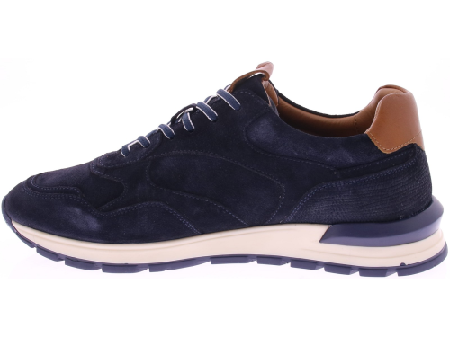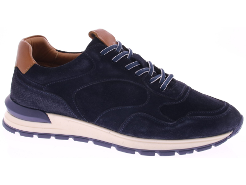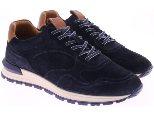 De Daniel Kenneth Yorn in donkerblauw suède is een stijlvolle sneaker die comfort en klasse combineert. Met een luxe afwerking van zacht suède, leren details en een volledig leren binnenzijde is dit de ideale schoen voor wie sportieve elegantie zoekt in het dagelijks leven. Het voetbed is uitneembaar.