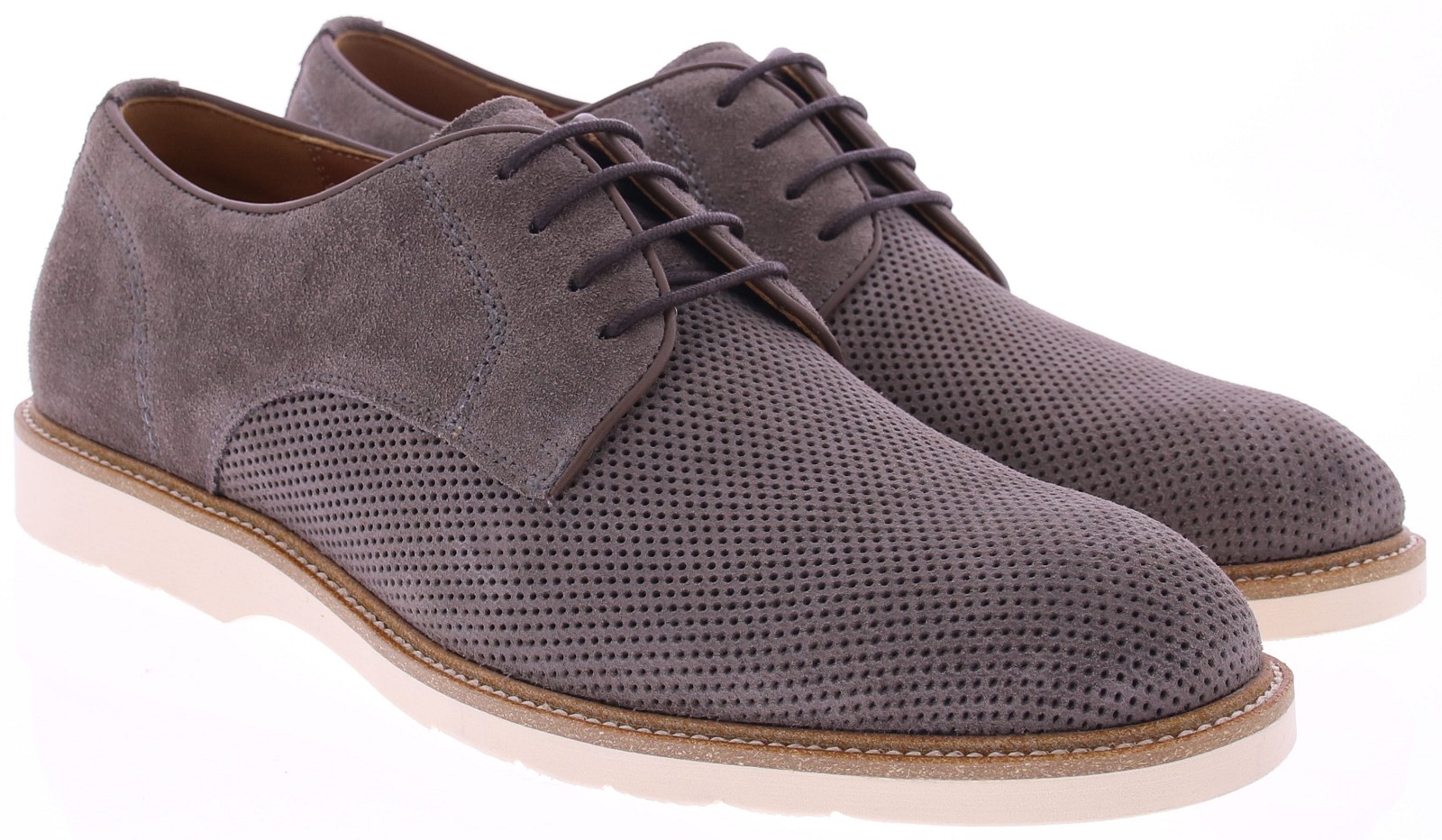 grijs suède heren veterschoen van Daniel Kenneth. Model Zackery heeft een frisse en verzorgde uitstraling met een sportieve touch. Het suède bovenwerk is voorzien van een subtiele perforatie in het voorblad, wat zorgt een moderne look. De leren voering draagt bij aan aangenaam draagcomfort. Dankzij de klepsluiting is dit model zeer geschikt voor heren met een hogere wreef. De witte rubberen zool zorgt voor licht en soepel loopcomfort. Ontdek ook de andere heren veterschoenen van Daniel Kenneth bij Klijsen.