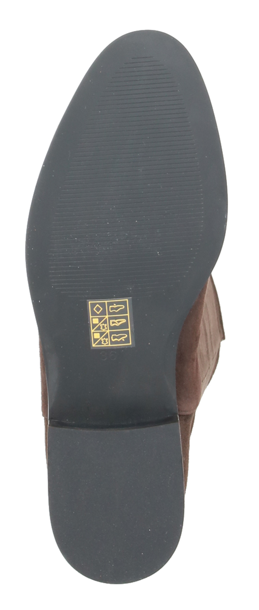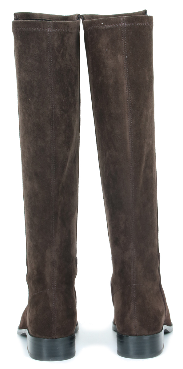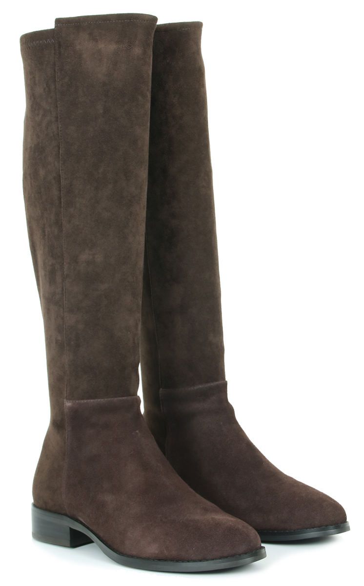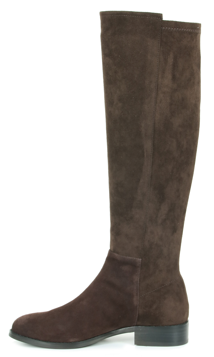 Donkerbruin suede dames lange laars van Di Lauro. Deze laars is uitgevoerd in donkerbruin suede met stretch materiaal op de kuit, waardoor deze goed aansluit. De schoen heeft een rubberen zool, leren voering en een hakhoogte van 2 cm.