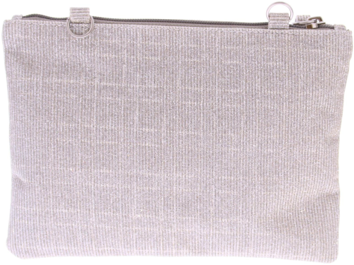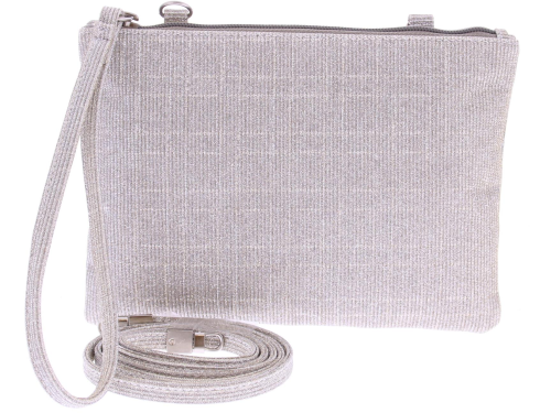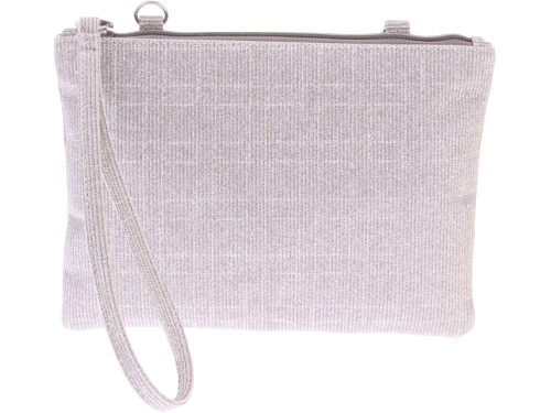 Deze stijlvolle Di Lauro tas is een perfecte mix van elegantie en functionaliteit. Gemaakt van een platina glitterstof. Met een breedte van 22 cm, een hoogte van 17 cm en een diepte van 9 cm biedt dit compacte tasje voldoende ruimte voor je essentials.